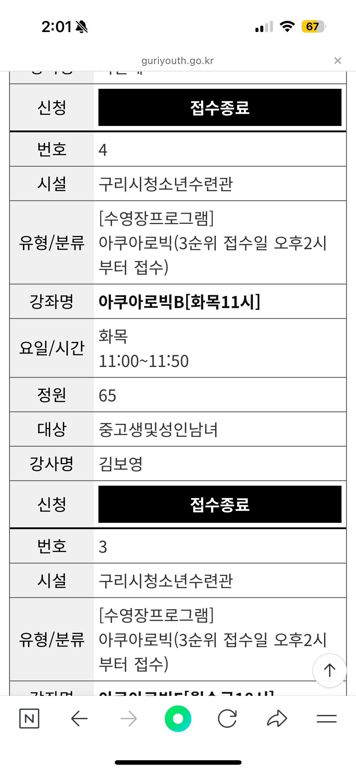 아쿠아로빅 3순위 온라인, 현장접수 둘다 6/25 14시에 오픈한다하여