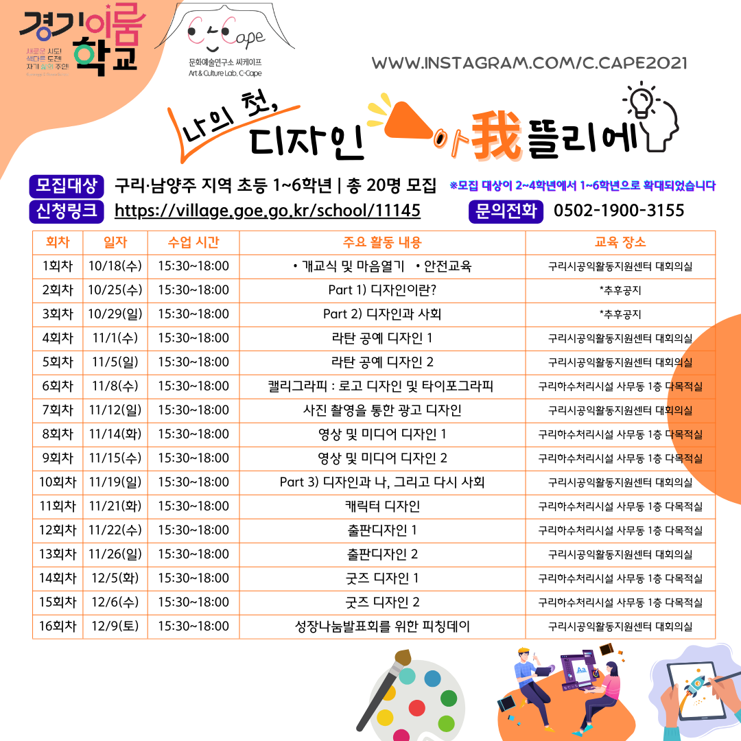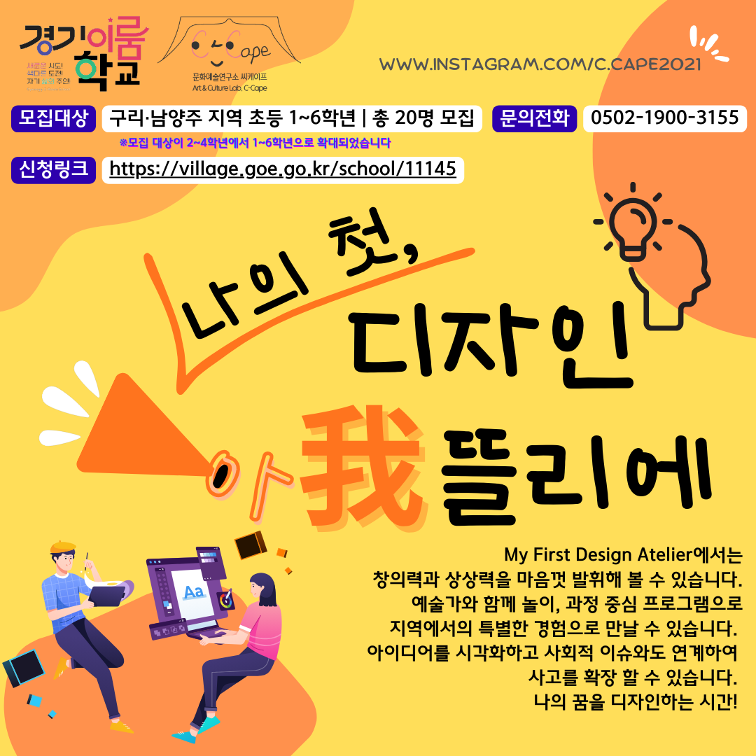 디자인에 관심있는 초등학생 여러분의 많은 참여 바랍니다!