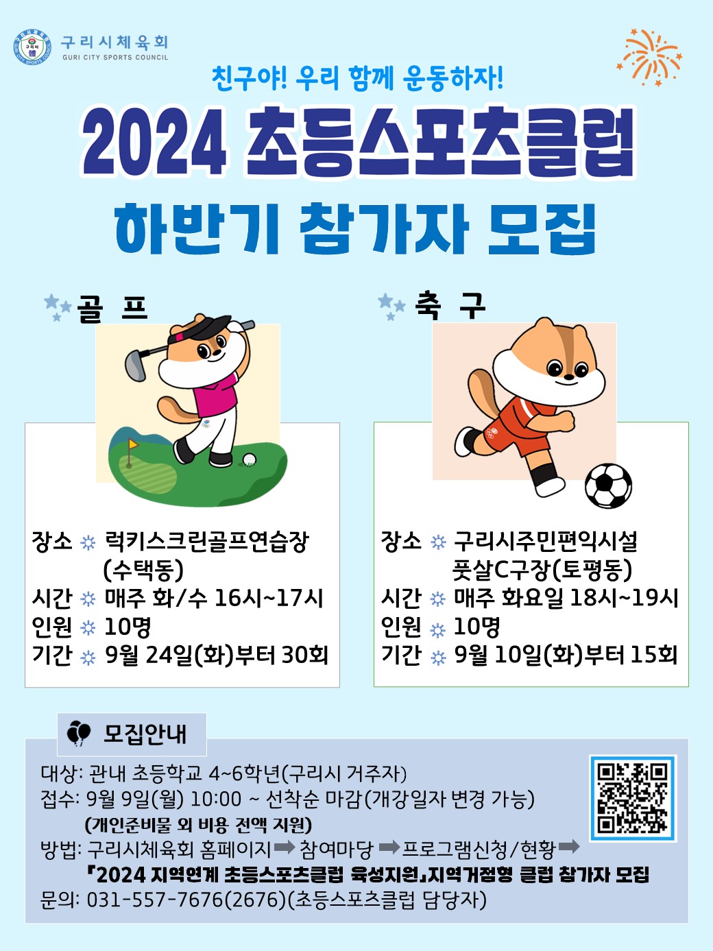 구리시 "2024 초등스포츠클럽" 지역거점형 클럽(종목: 골프, 축구) 참가자 모집(무료)