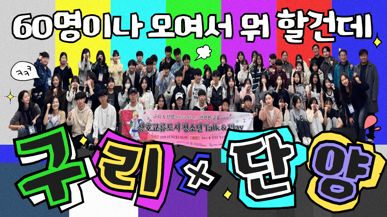 [구리×단양] 60명이나 모여서 뭐할건데_청소년 교류활동 Talk & Play 작성자 김재희 등록일자 2025년 11월 7일 10시 6분 27초 조회 81 제목을 입력하세요 (12).jpg [ Size : 1.05MB , Down : 22 ] 미리보기 다운로드 목록보기