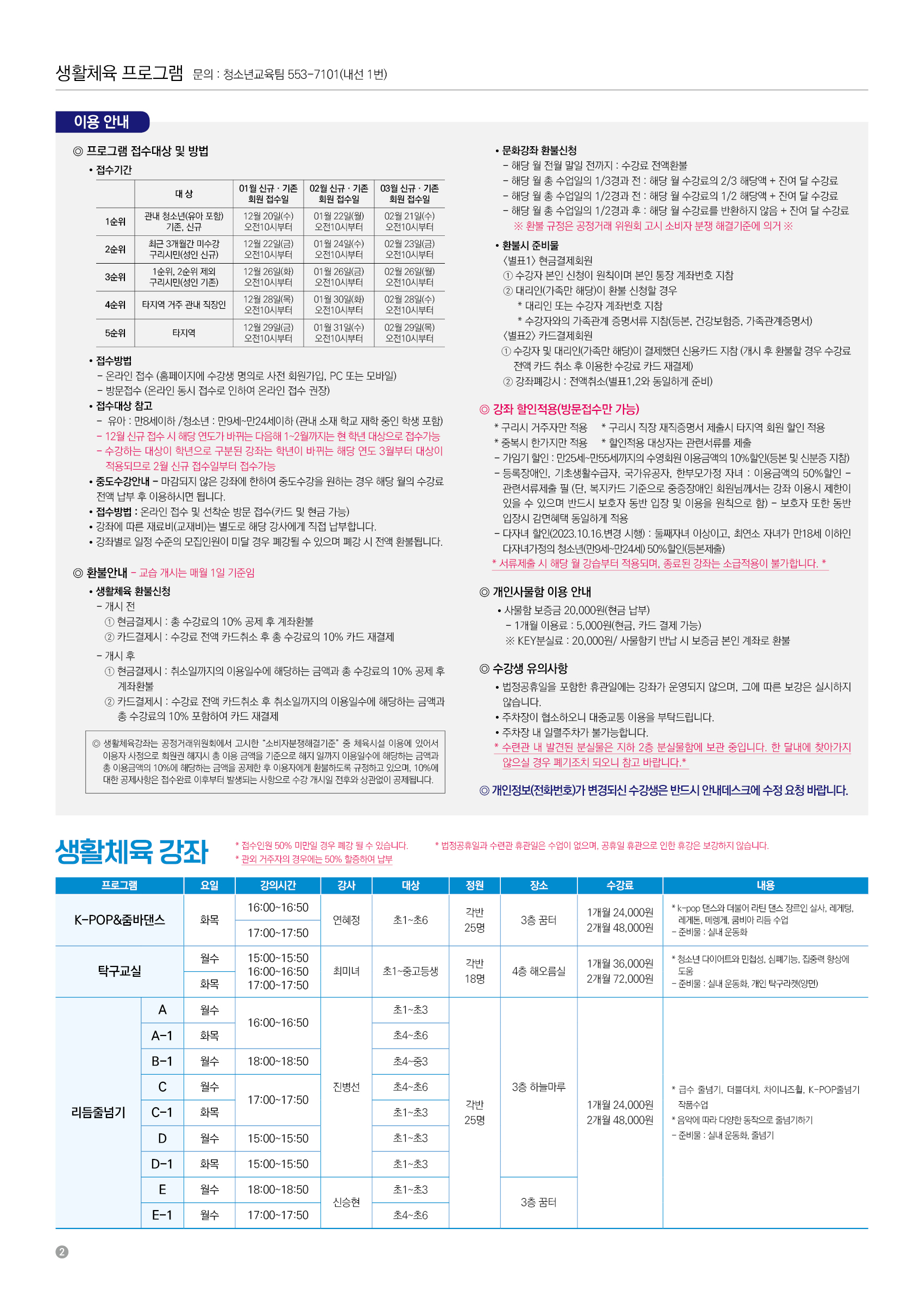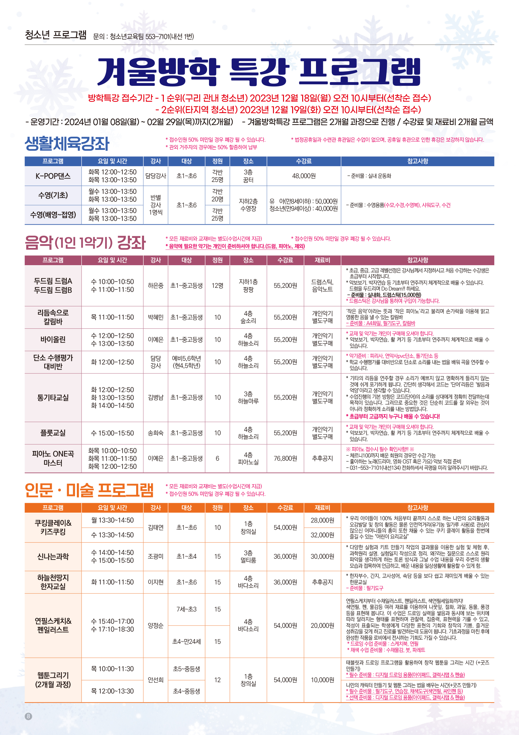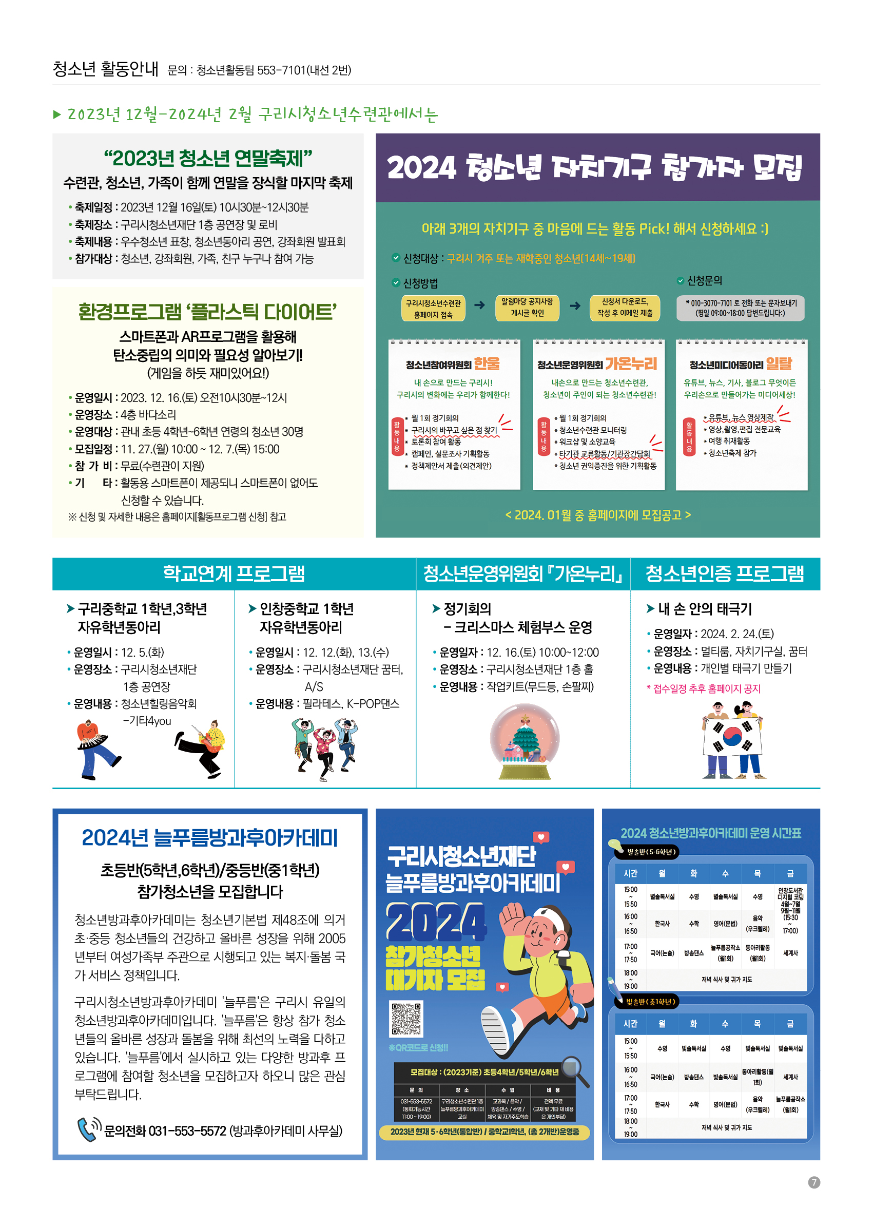 구리시청소년수련관 23년 12월~24년 02월 소식지