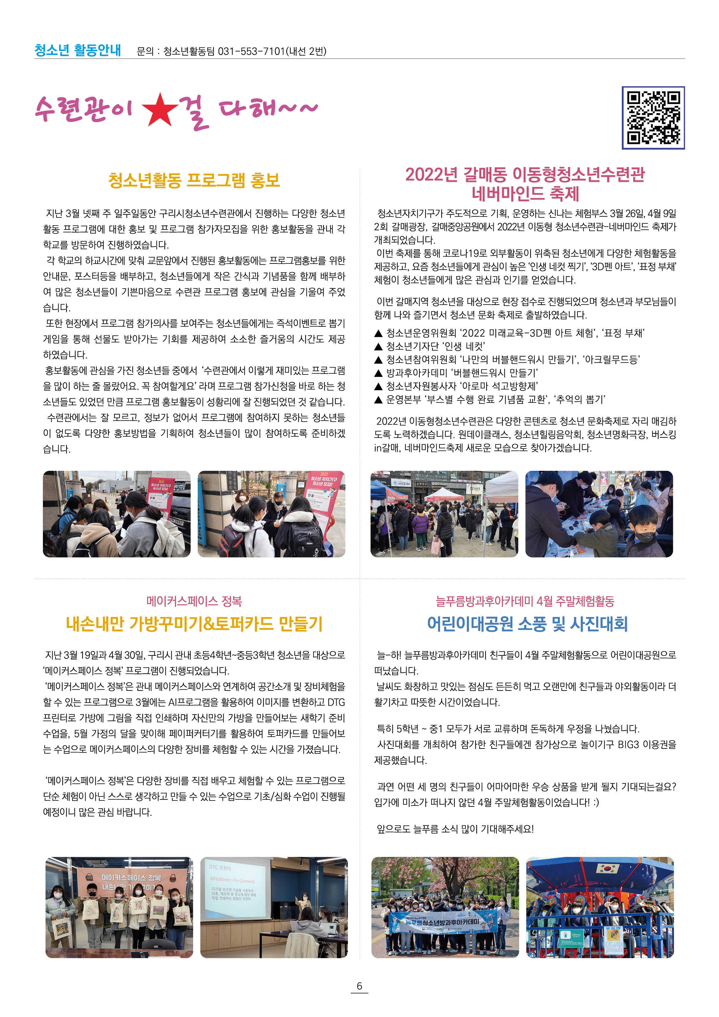 2022 05,06 구리시 청소년수련관 소식지out5.jpg [ Size : 811.76KB , Down : 440 ] 미리보기 다운로드