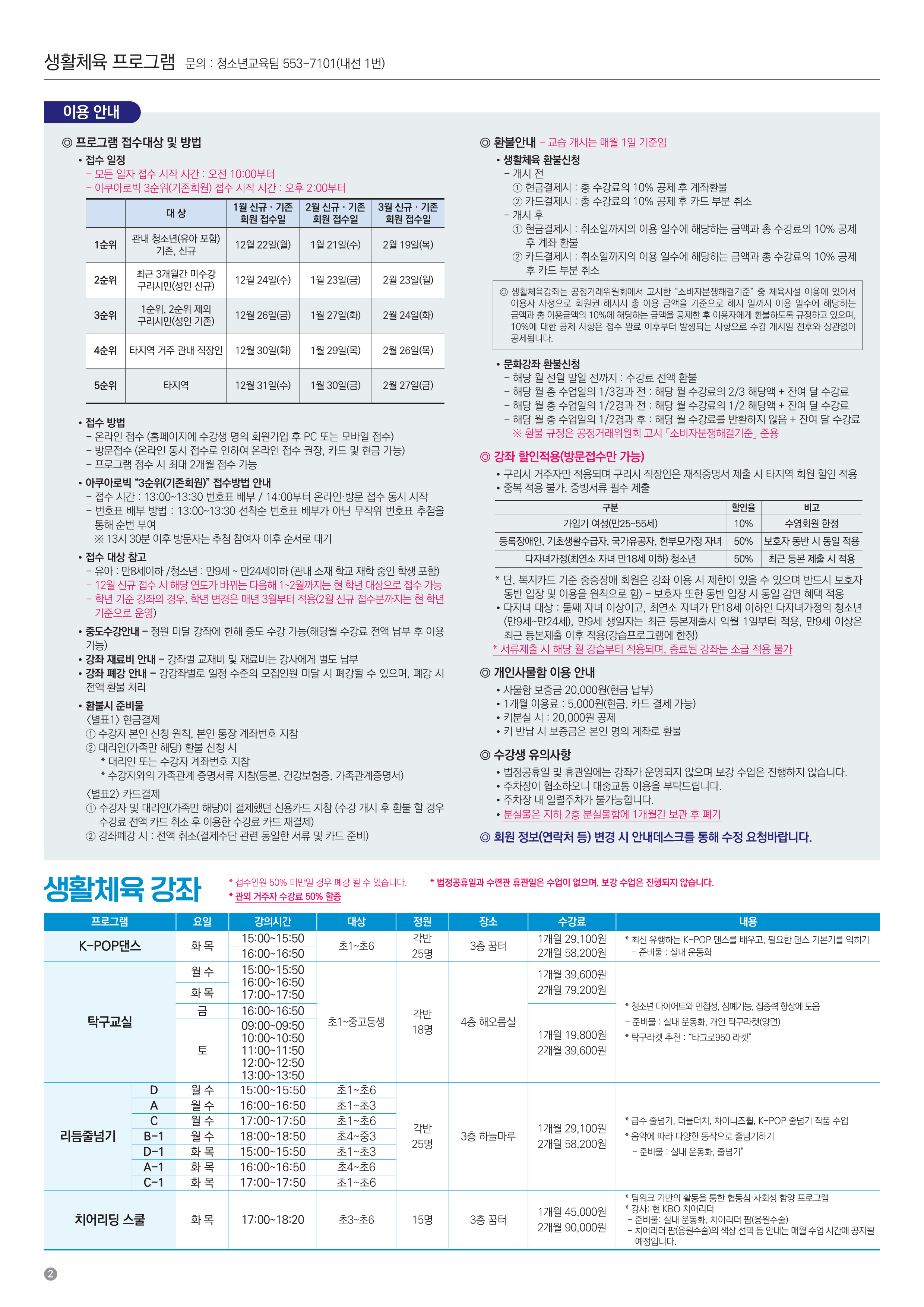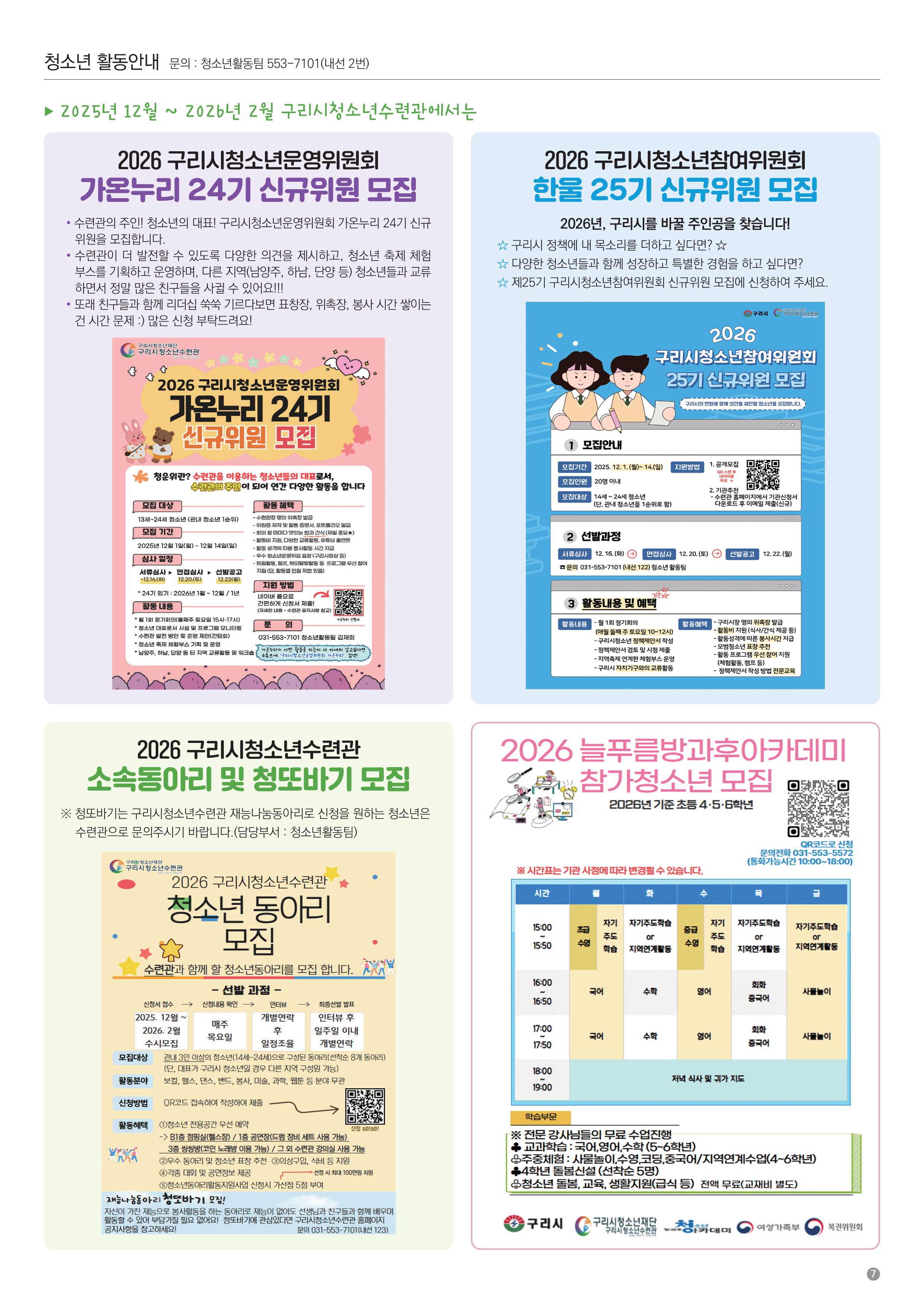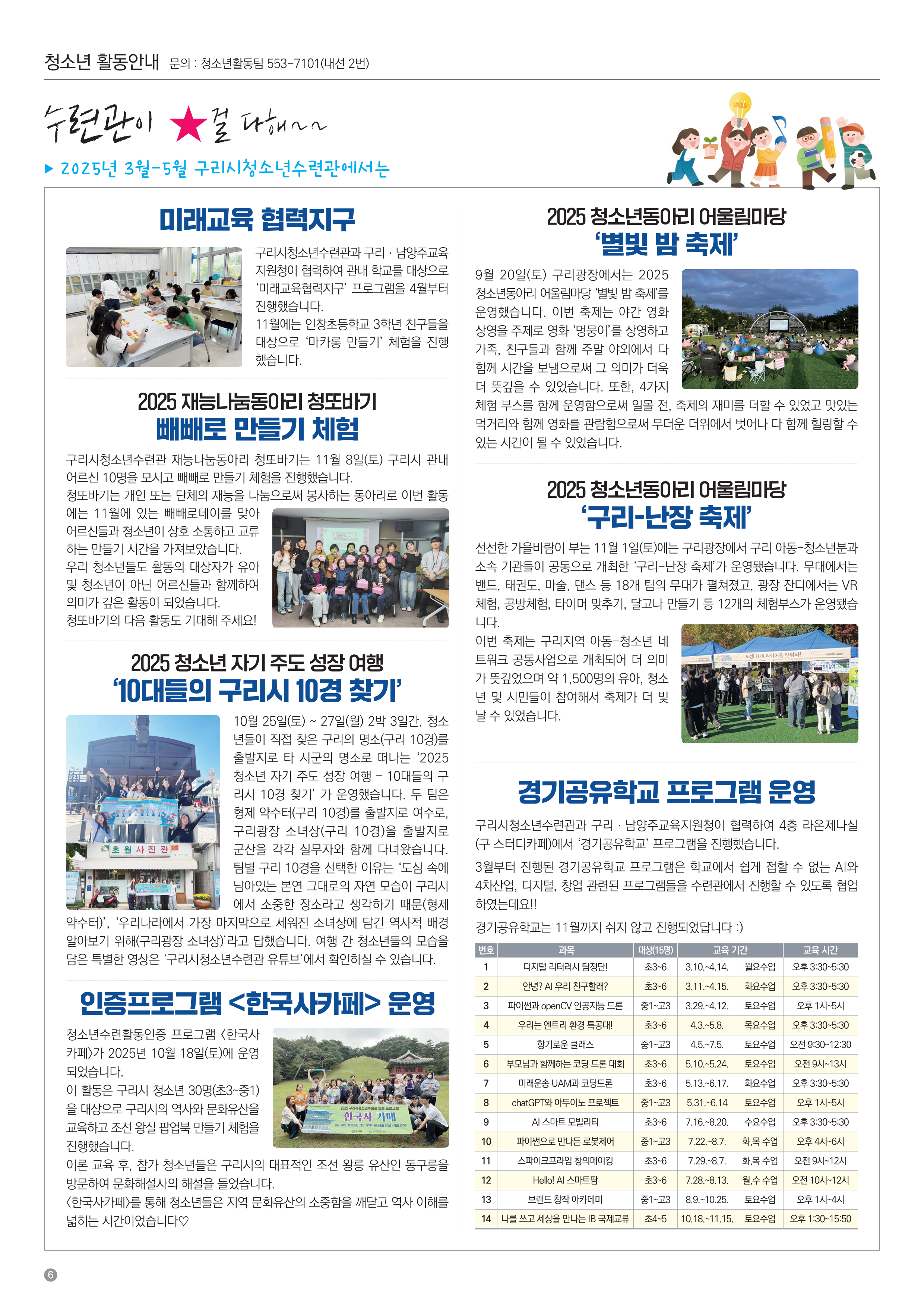 구리시청소년수련관 2025년 12월~2026년 2월 소식지