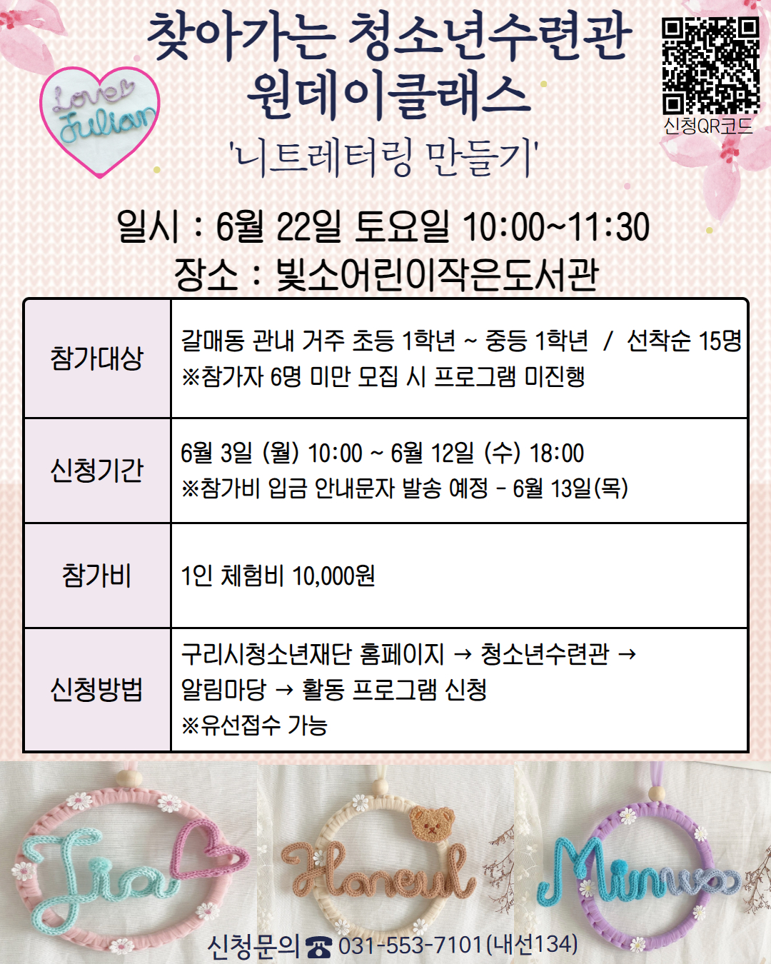 | 프로그램명 | 6월 찾아가는 청소년수련관 원데이클래스 '니트레터링 만들기' |
