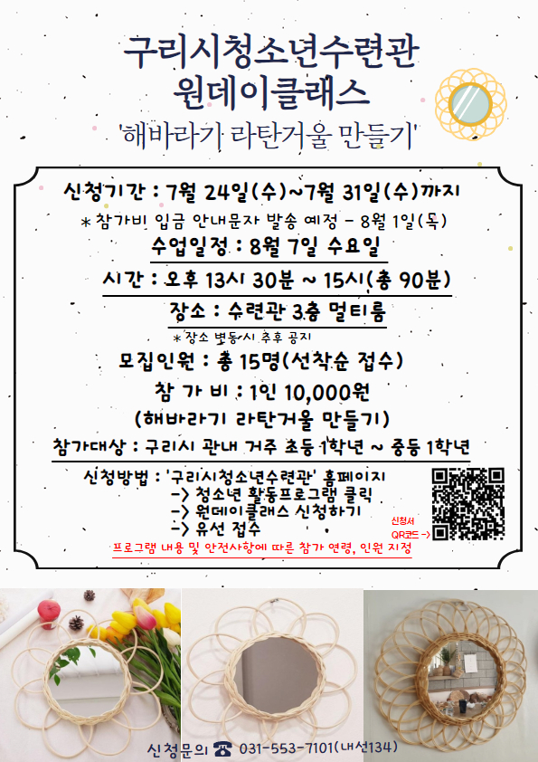 | 프로그램명 | 8월 구리시청소년수련관 원데이클래스 '해바라기 라탄거울 만들기' |