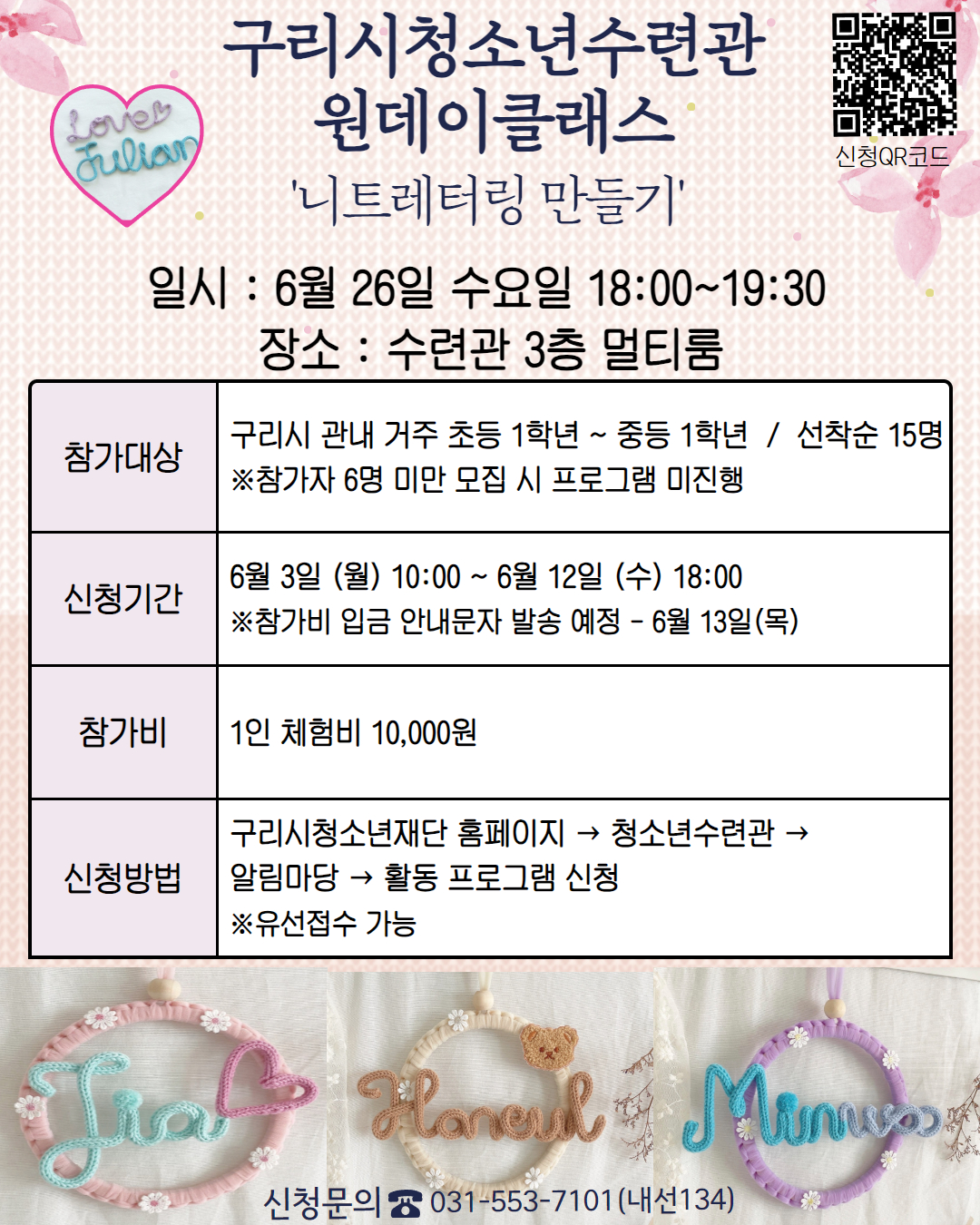 | 프로그램명 | 6월 구리시청소년수련관 원데이클래스 '니트레터링 만들기' |