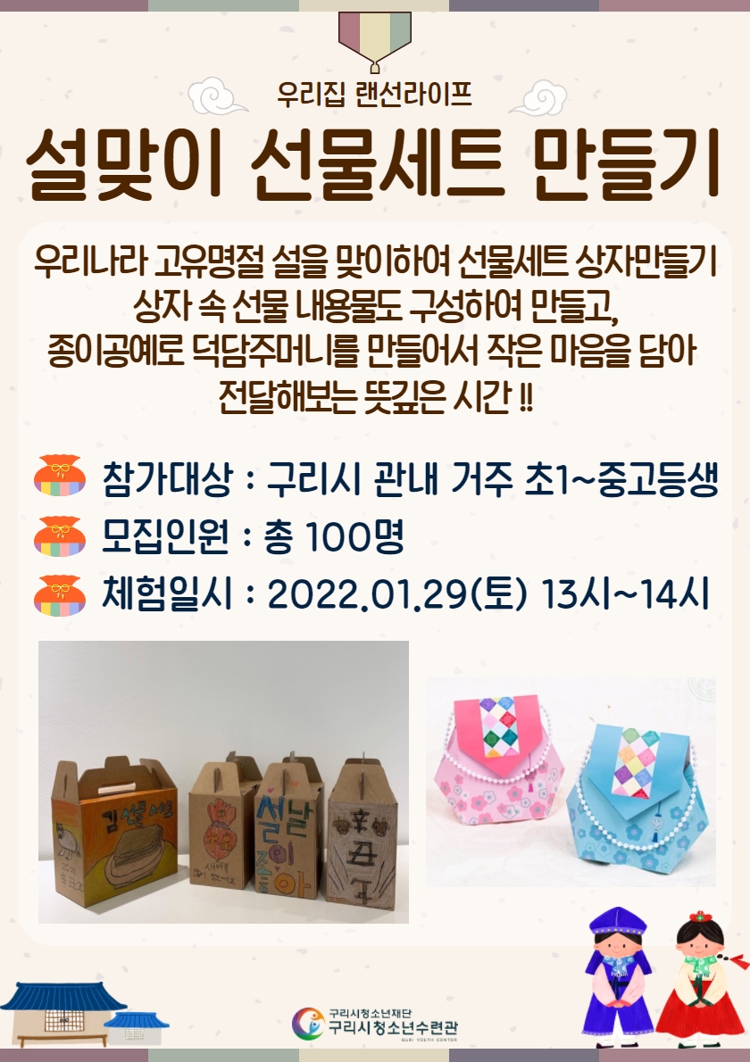 | 프로그램명 | 우리집 랜선라이프 <설맞이 선물세트 만들기> *보호자 연락처 필수* |