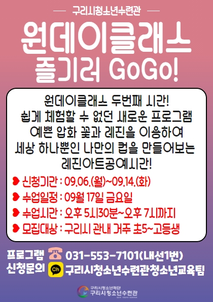 | 교육장소 | 구리시청소년수련관 3층 멀티룸 |