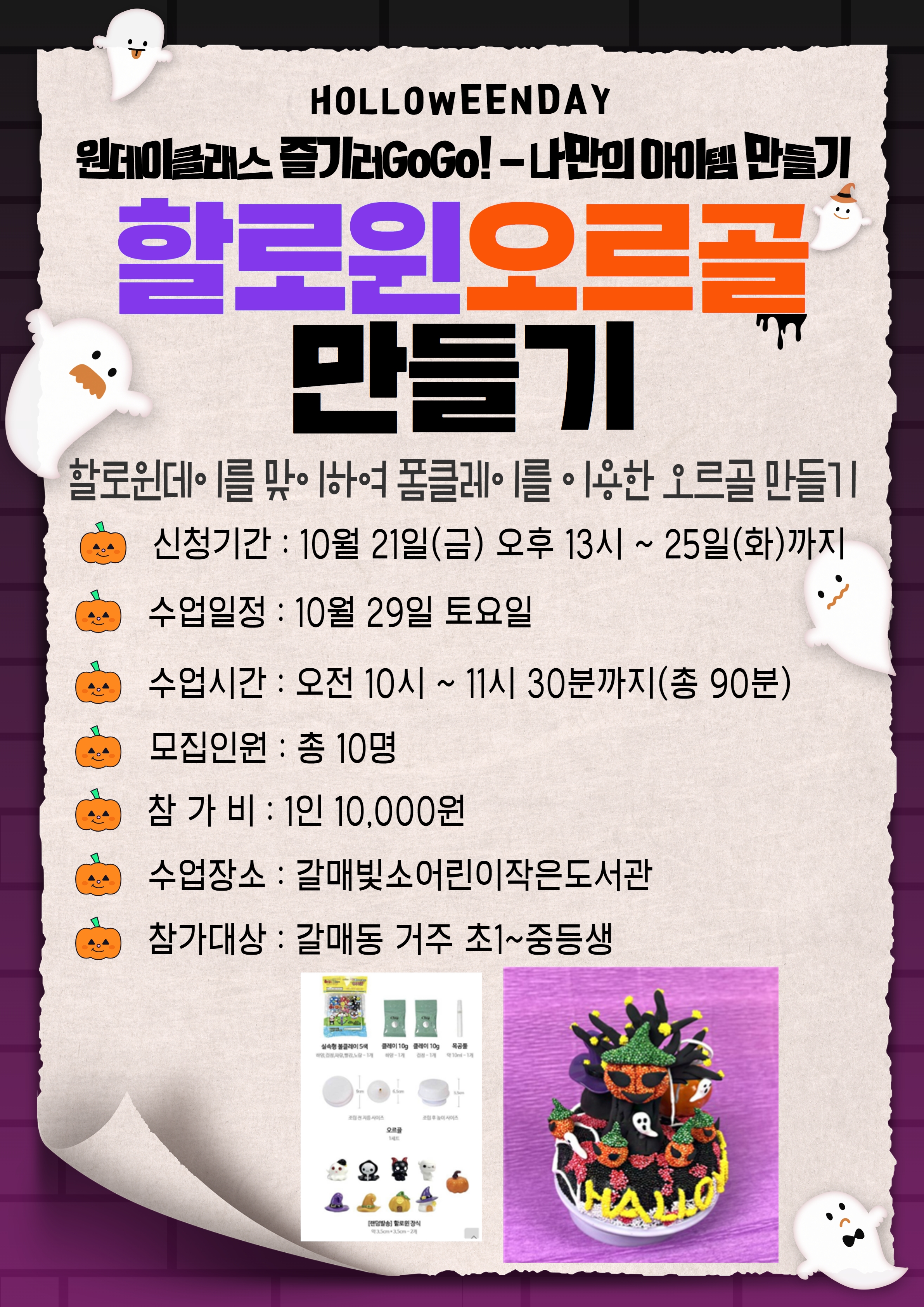 | 프로그램명 | 2022 원데이클래스 즐기러 GoGo! < 할로윈오르골 만들기 > *갈매동거주/보호자 연락처 필수* |