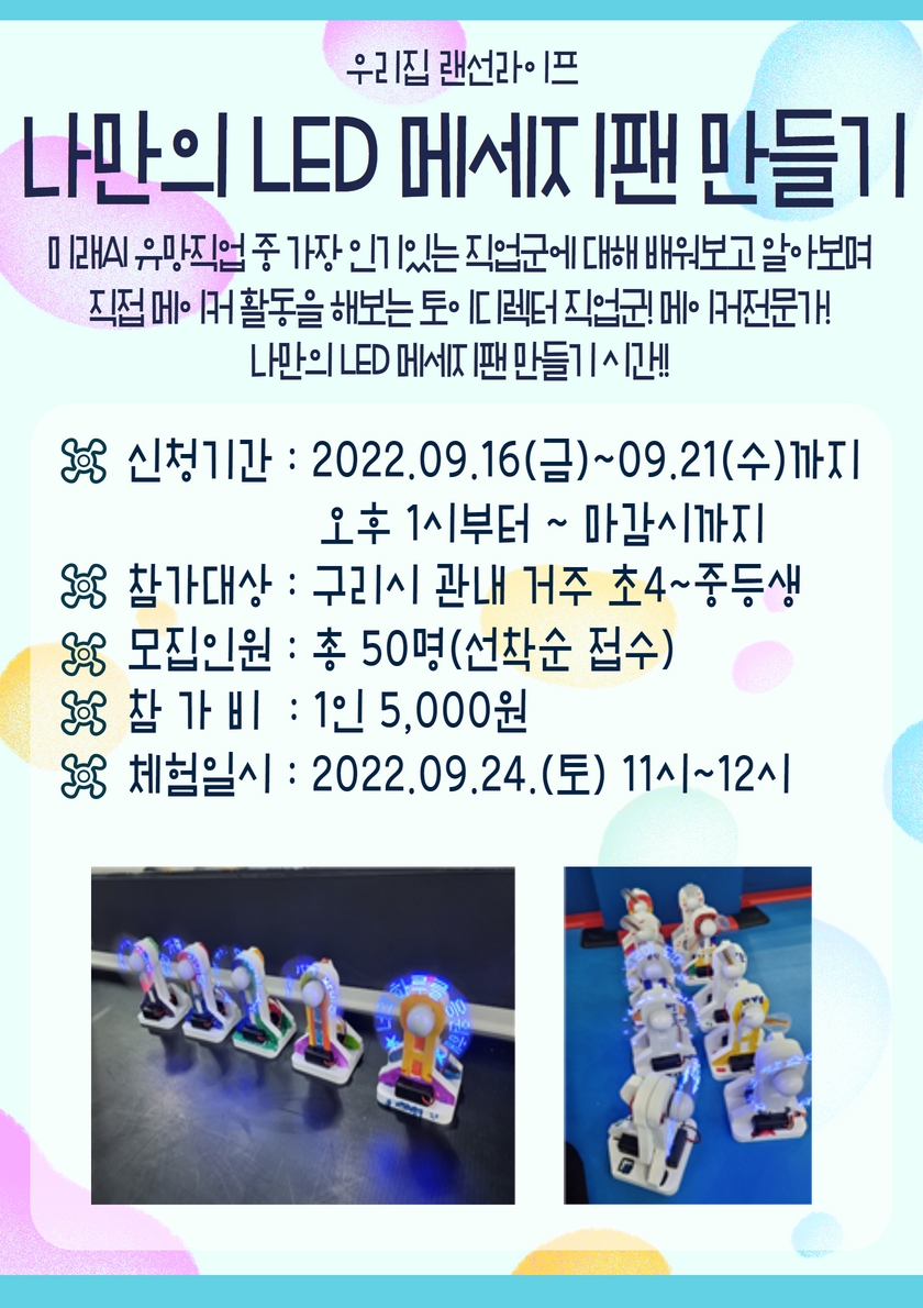 | 프로그램명 | 우리집 랜선라이프 <나만의 LED 메세지팬 만들기> *보호자 연락처 필수* |
