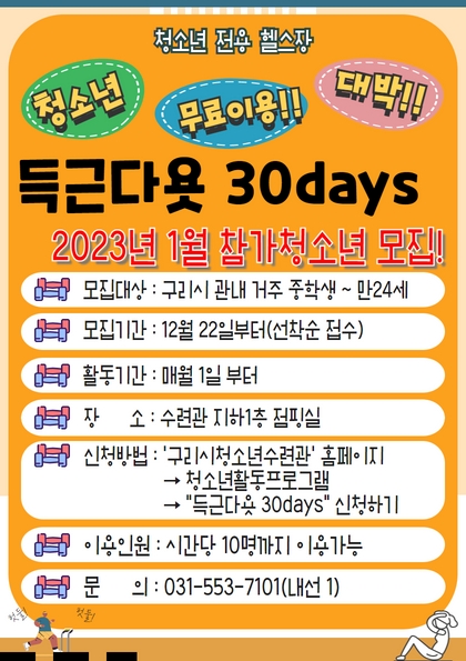 | 프로그램명 | 득근다욧 30Days * 이용시간 필수작성!! * |