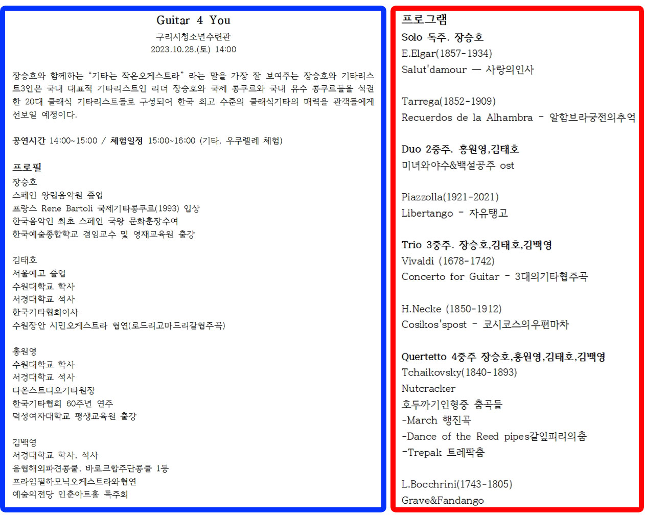 | 프로그램명 | 2023 다놀자 예술학교 클래식 관람 및 체험 |