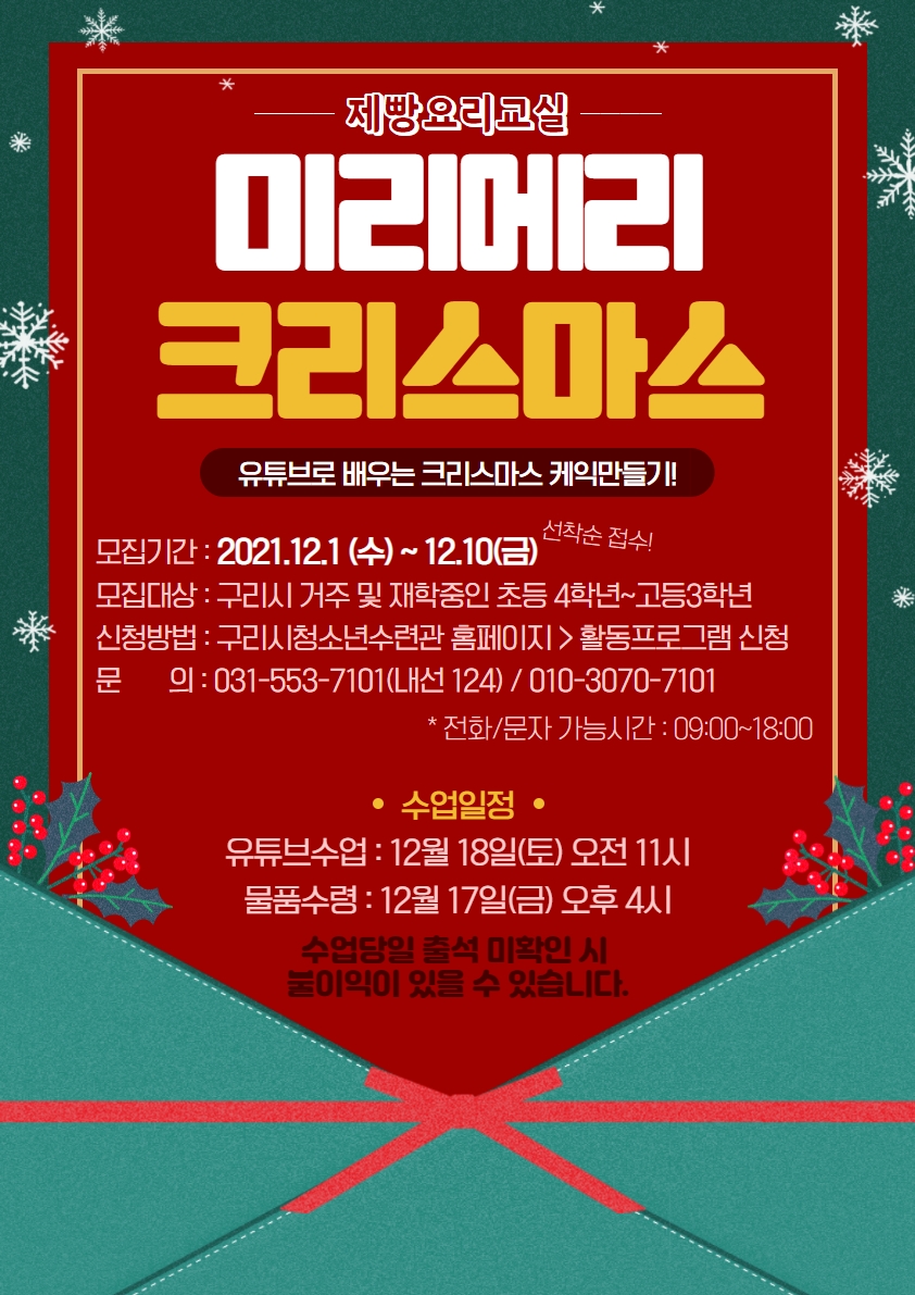 | 프로그램명 | [제빵요리교실] 미리메리크리스마스! *온라인수업* |
