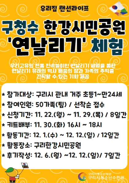 | 프로그램명 | 구청수 한강시민공원 '연날리기' 체험 <우리집 랜선라이프> |