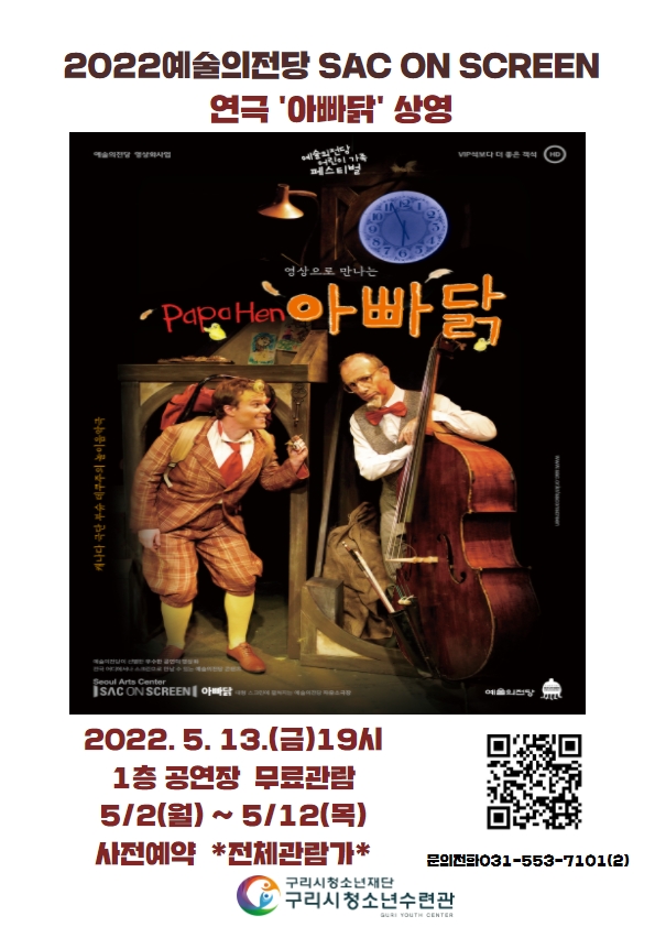 | 프로그램명 | 예술의전당 SAC ON SCREEN(삭온스크린) 연극 '아빠닭' 상영 *신청시간칸에 인원 기재* |