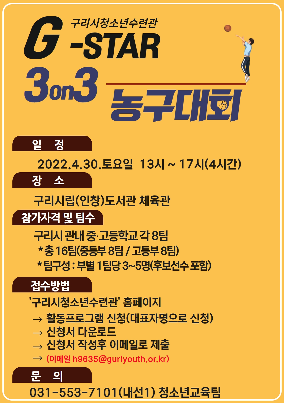 | 프로그램명 | 구리시청소년수련관 G-STAR 3on3 농구대회 |