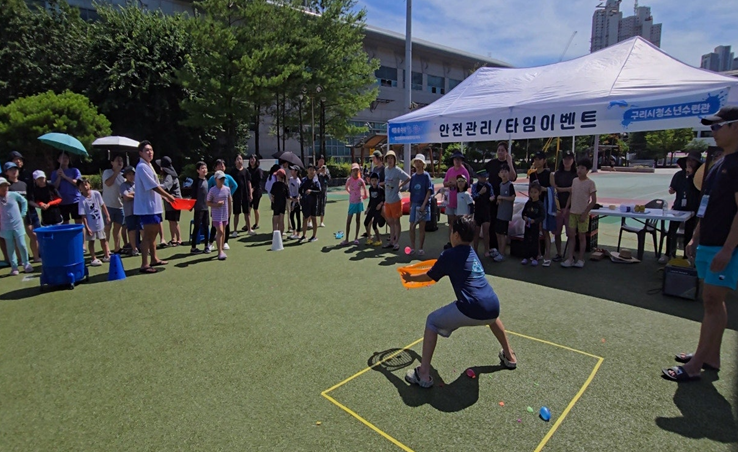 구리광장 | 2025. 7. 12.(토) | 946명 | -운영본부 : 타임이벤트, 응급처치실, 탈의실 운영 등 -체 험 존 : 청소년동아리, 비치백 만들기, 워터타투, 논알콜 칵테일 만들기 부스 운영 -힐 링 존 : 10x10 에어수영장, 쉼터 운영 -PLAY존 : 물총 사격, 물풍선 빙고, 물풍선 점수왕, 물풍선 골인 부스 운영 |