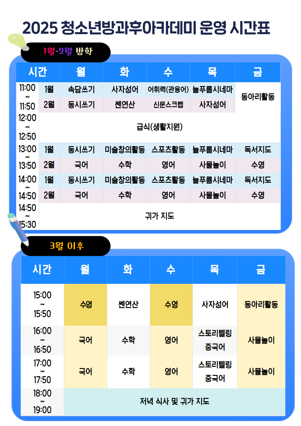 2025 늘푸름방과후아카데미 신규참가청소년 대기자 모집