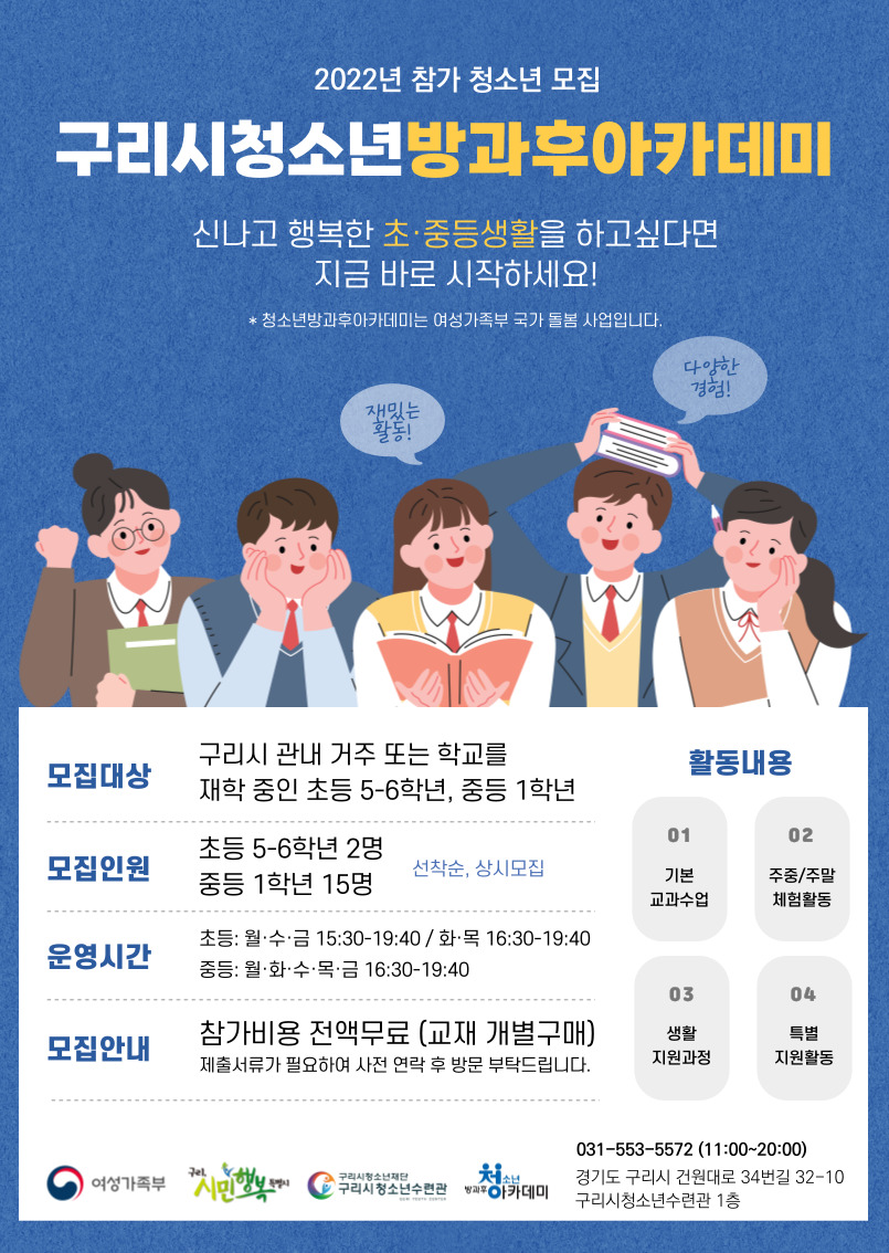 안녕하세요! 구리시청소년방과후아카데미에서 참가청소년을 모집합니다.🧑🏻👧🏻