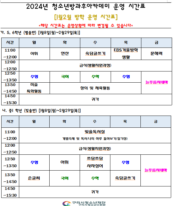 2024년 늘푸름방과후아카데미 운영시간이 변경됩니다.