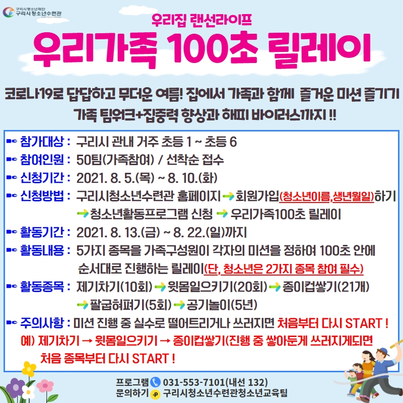 (가족과 함께 활동한 영상을 찍고 느낀점 등 밴드에 후기 댓글 꼭! 남겨주세요~)