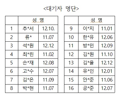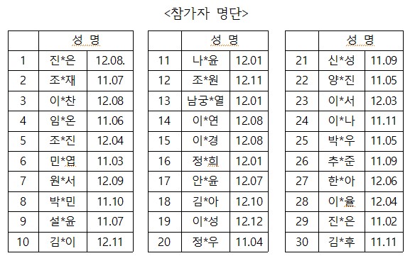 대기자는 참가포기 발생 시 순번대로 개별연락 드리도록 하겠습니다.