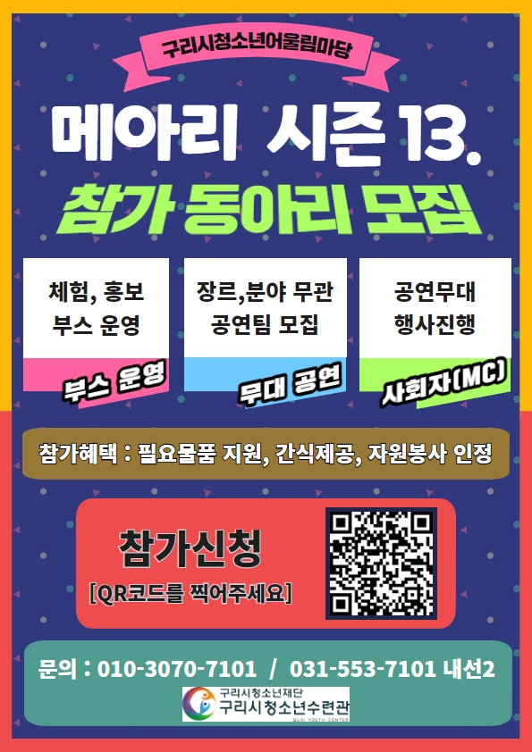 축제에 직접 참여해서 함께 할 동아리 및 청소년을 모집 중이니 많은 신청바랍니다.