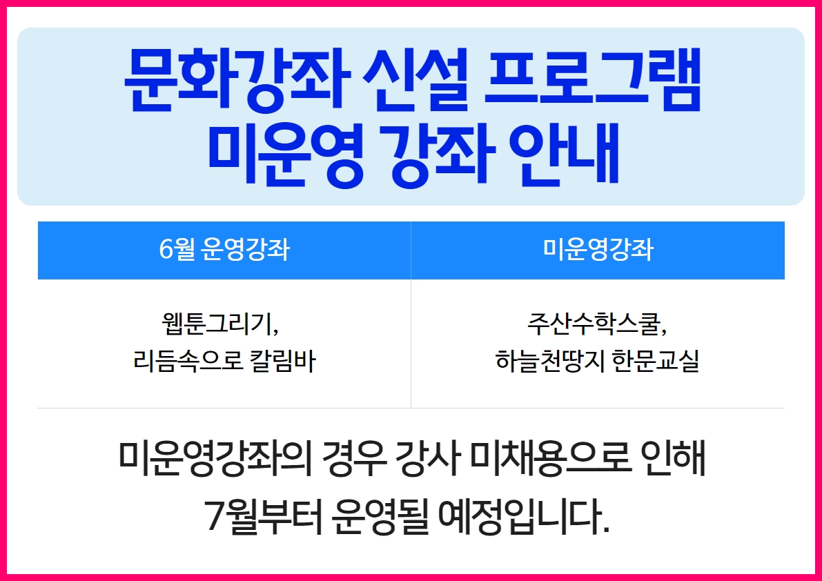 문화강좌 신설프로그램 미운영강좌 안내 작성자 관리자 등록일자 2023년 5월 20일 15시 1분 3초 조회 831 물의날 (4).jpg [ Size : 222.1KB , Down : 728 ] 미리보기 다운로드 목록보기