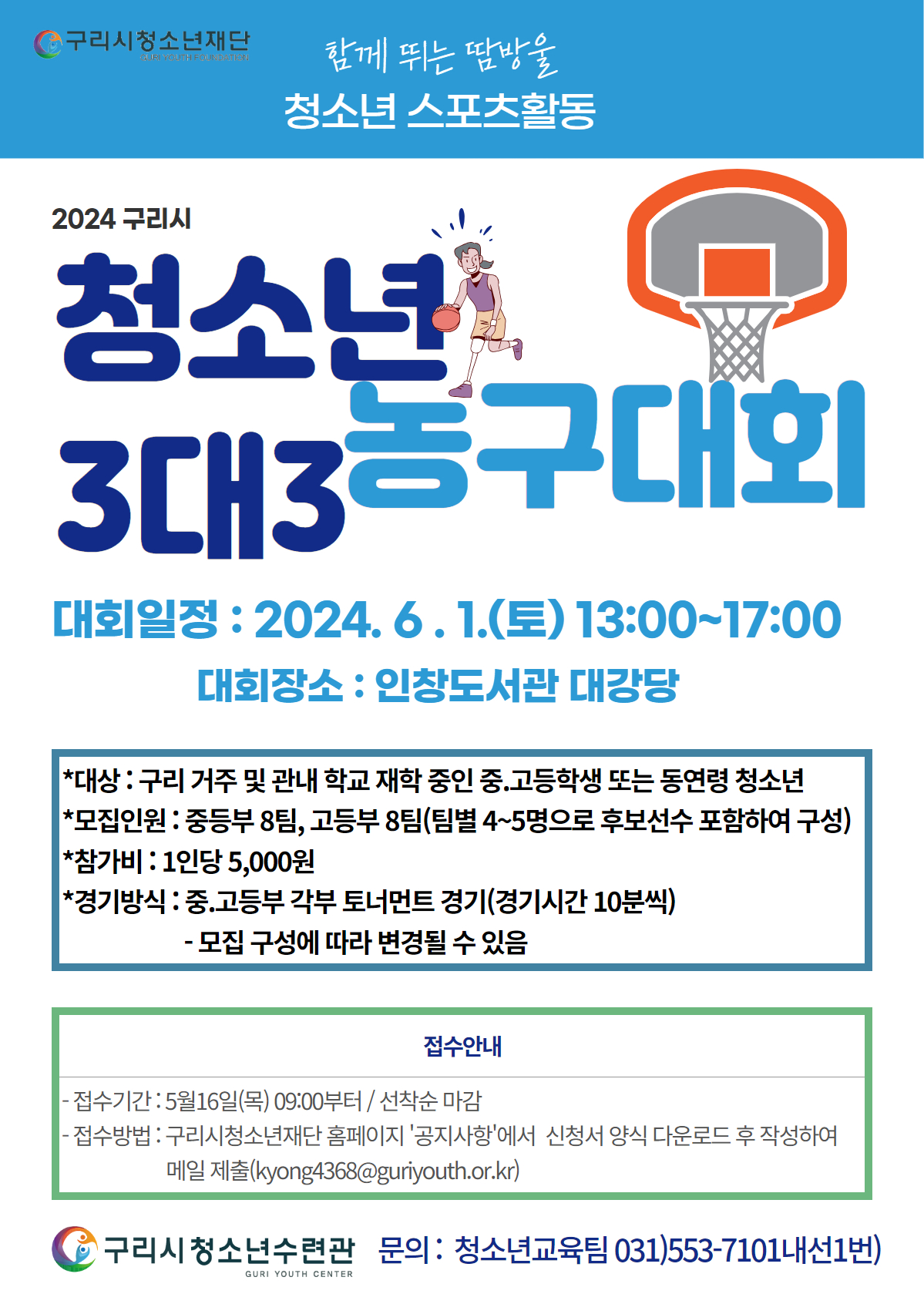[ 2024 구리시 청소년 3대3 농구대회 모집 안내 ]