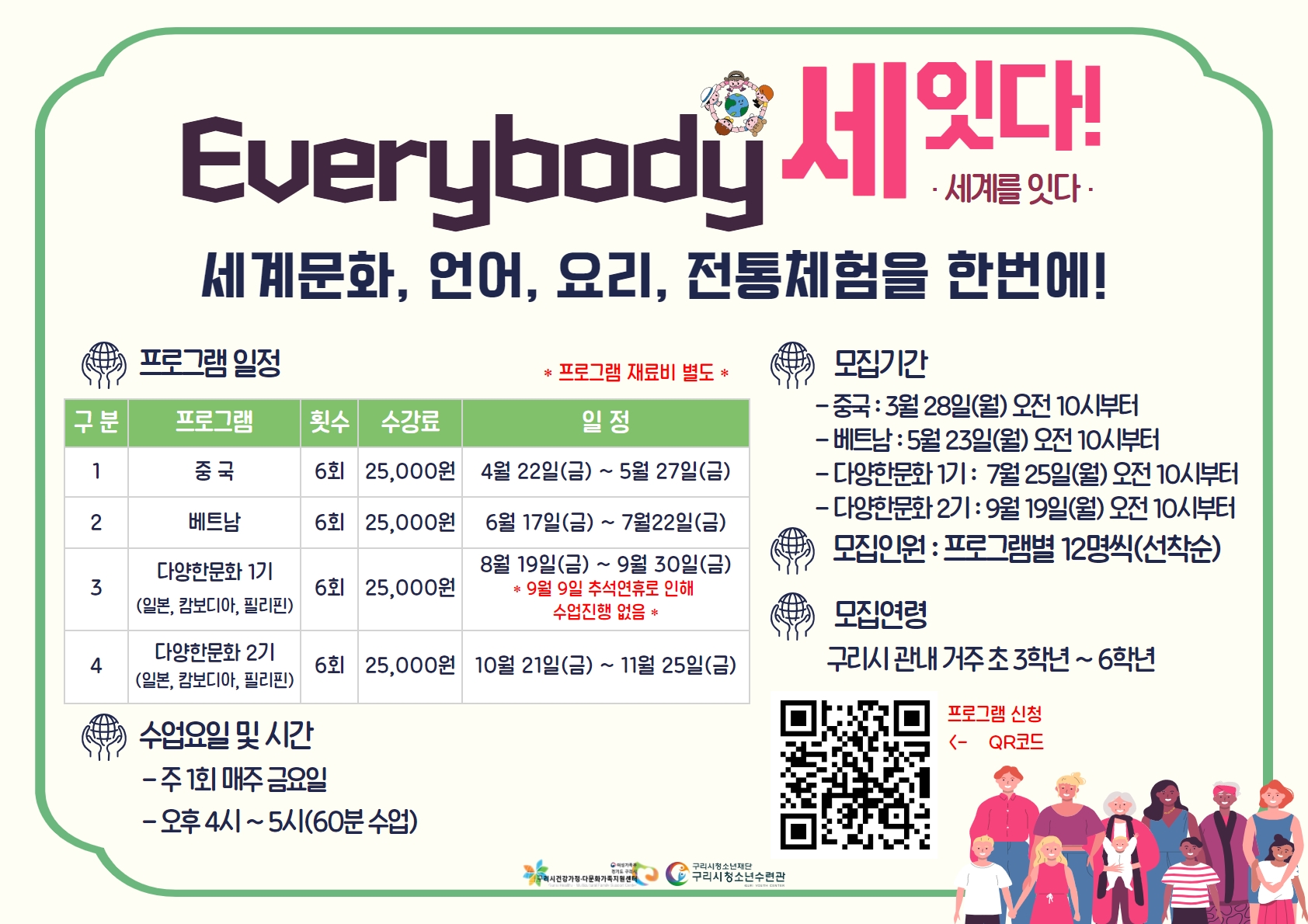 청소년 친구들이 세계의 다양한 문화와, 언어, 요리, 전통문화(의상, 춤)를 한번에 배울 수 있는 특별한 기회!!
