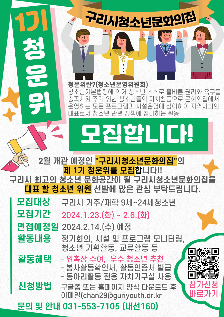 구리시청소년문화의집 제1기 청소년운영위원회 모집(~2/6)
