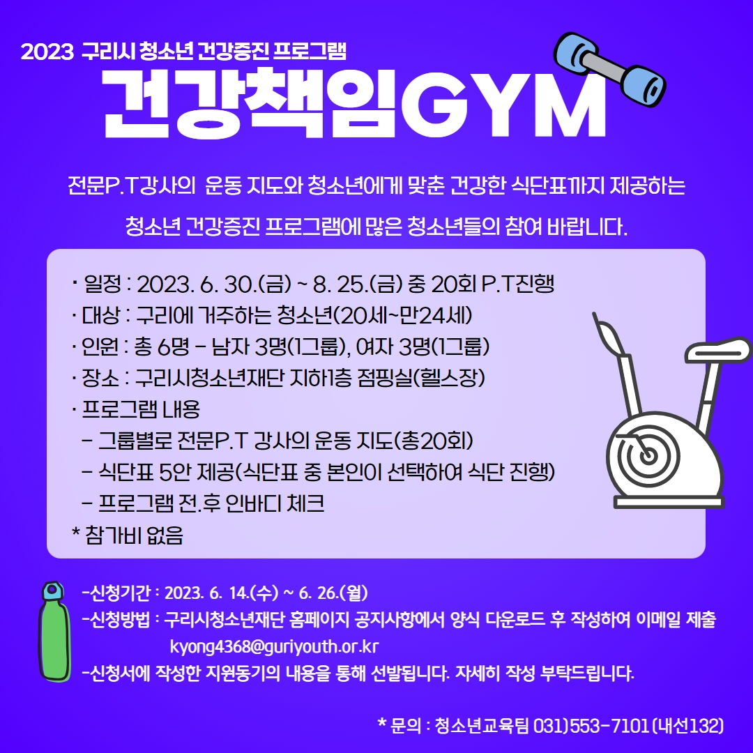 2023 구리시 청소년 건강증진 프로그램 “건강책임GYM” 참가자 모집 |