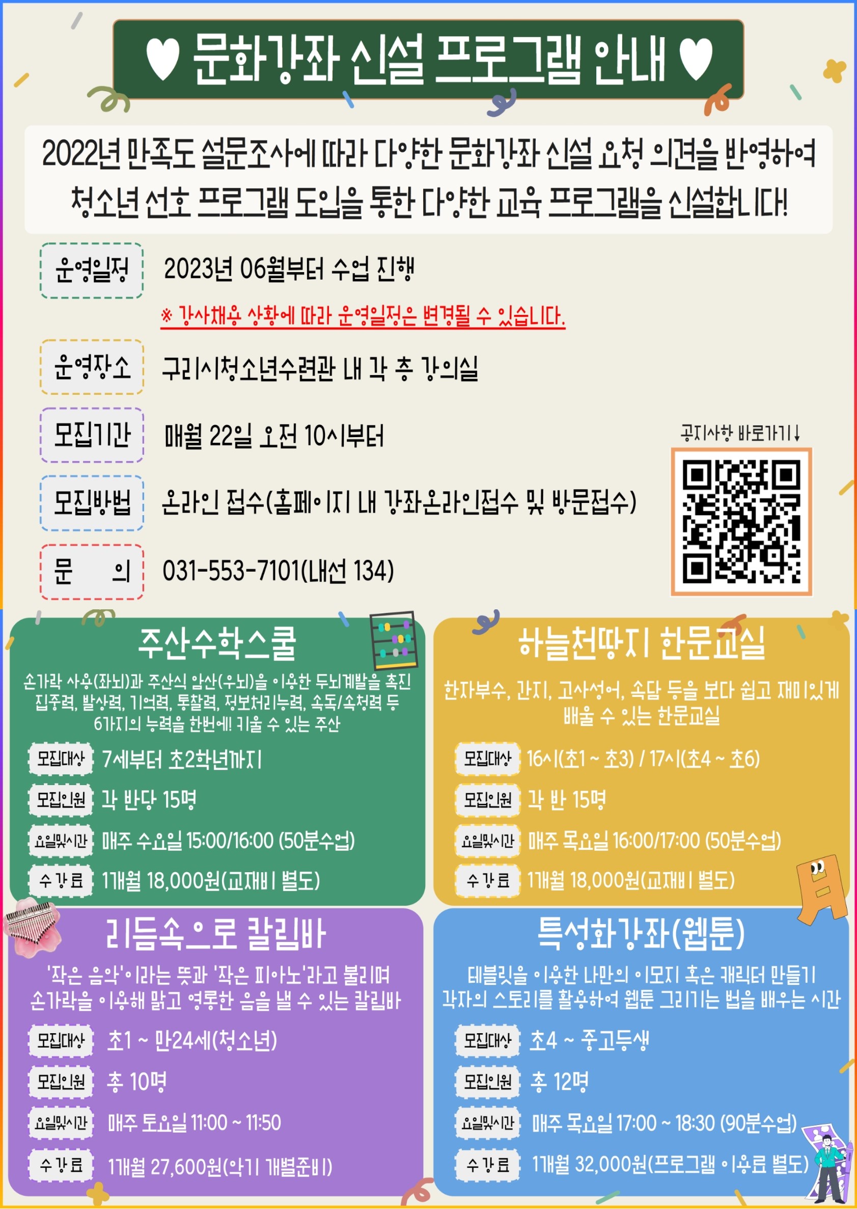 청소년교육팀 문화강좌 프로그램 신설 공지 작성자 관리자 등록일자 2023년 4월 12일 17시 55분 11초 조회 1,694 제목을 입력하세요 (8).jpg [ Size : 653.46KB , Down : 814 ] 미리보기 다운로드 목록보기