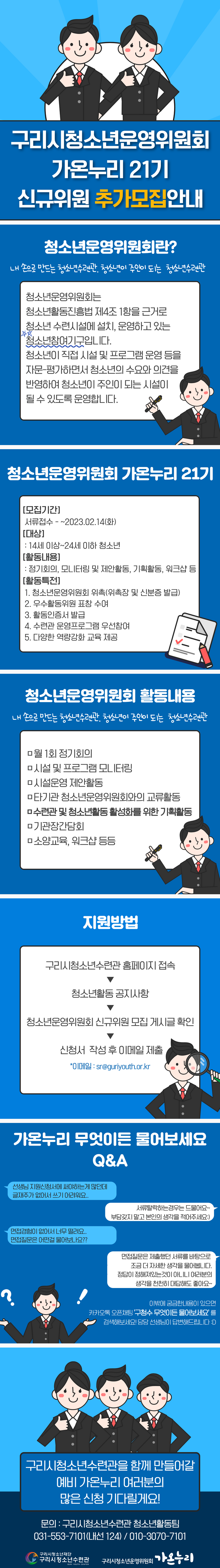 구리시청소년수련관의 대표가 될 청소년운영위원회 가온누리 20기를 모집합니다!