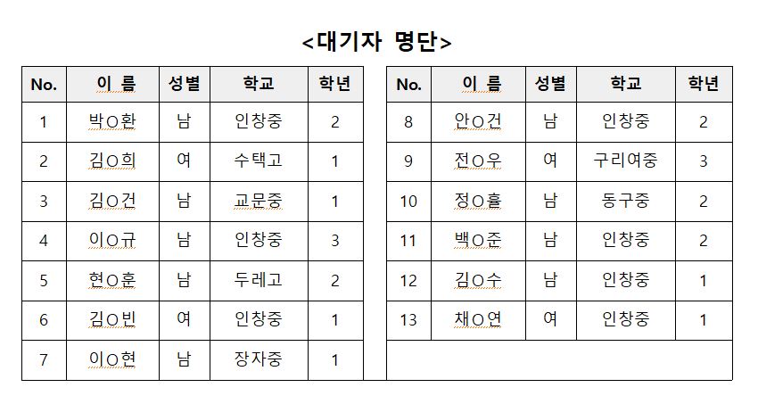 대기자는 참가포기 발생 시 순번대로 개별연락 드리도록 하겠습니다.
