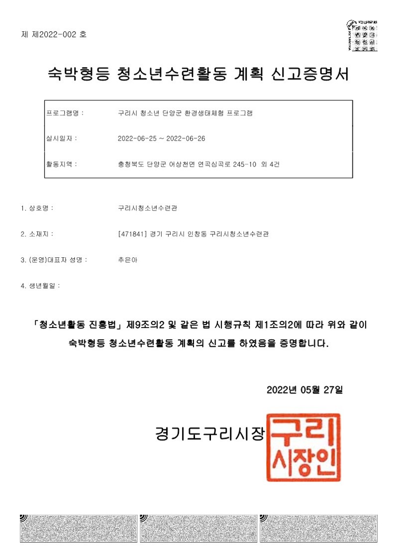※본 프로그램은 청소년수련활동신고제 신고를 완료한 프로그램입니다.