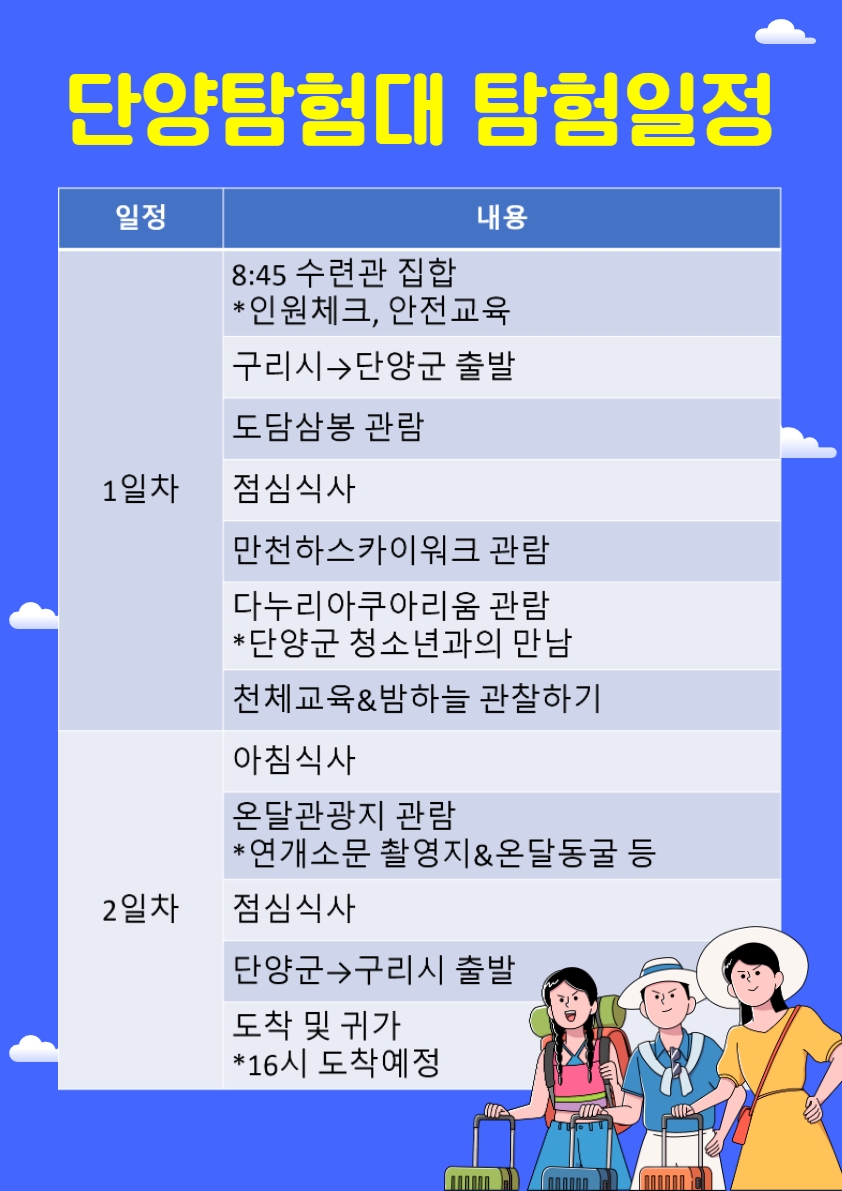 구리시 청소년 단양군 환경생태체험 프로그램[도전! 단양탐험대] 참가자 모집