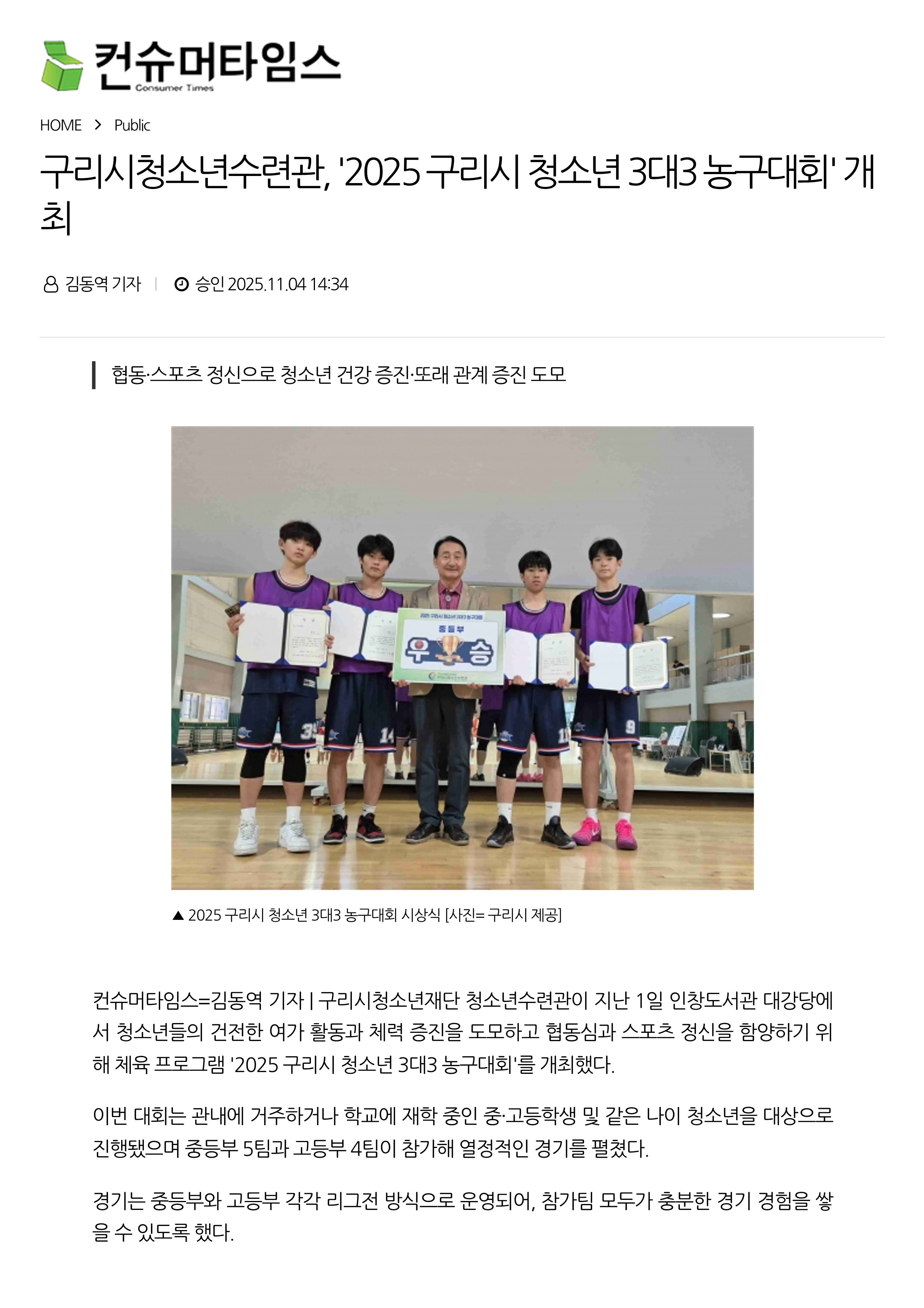 구리시청소년수련관, '2025 구리시 청소년 3대3 농구대회' 개최 작성자 이경주 등록일자 2025년 11월 4일 17시 1분 54초 조회 82 1.png [ Size : 1.82MB , Down : 48 ] 미리보기 다운로드 2.png [ Size : 258.12KB , Down : 33 ] 미리보기 다운로드 목록보기