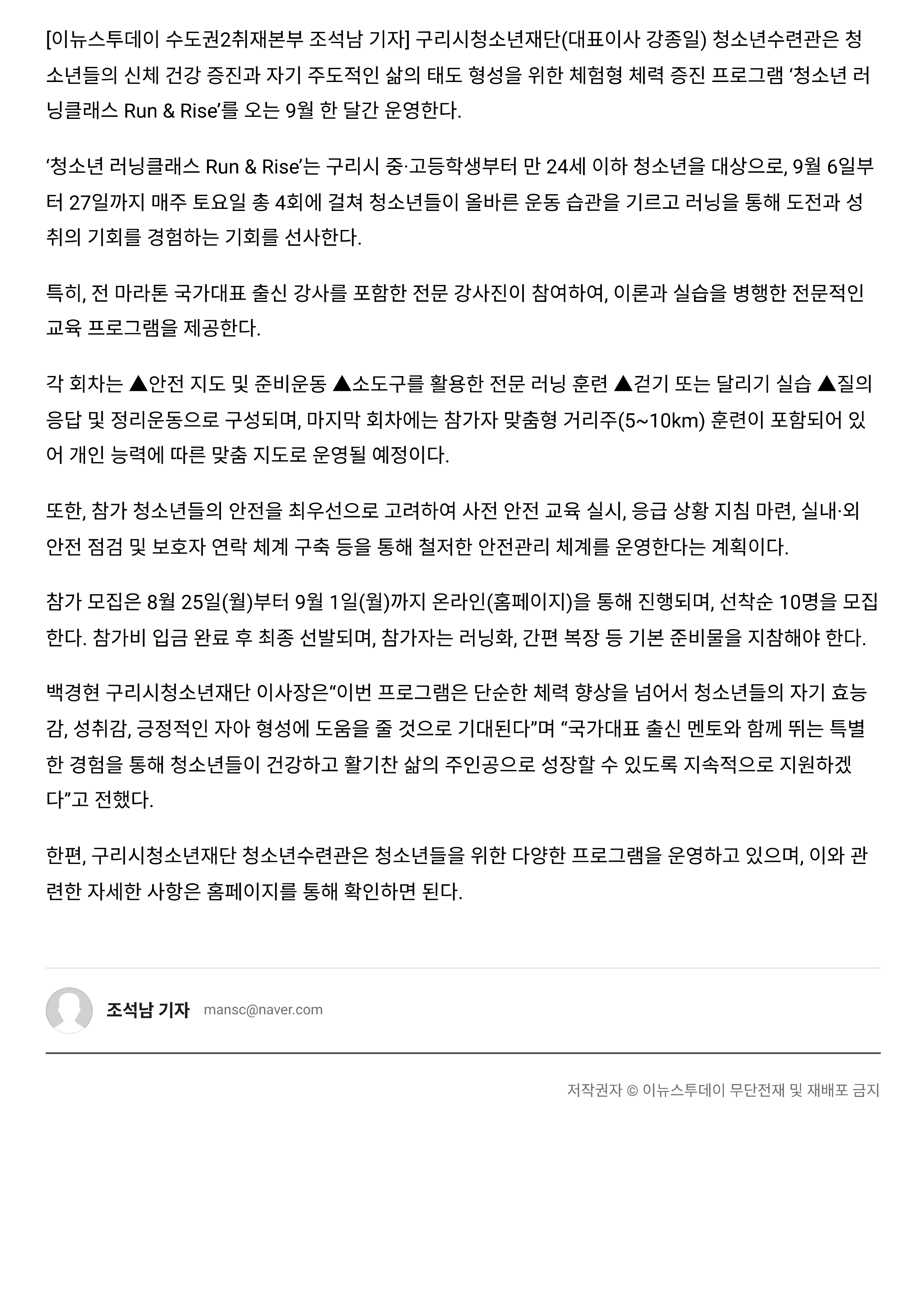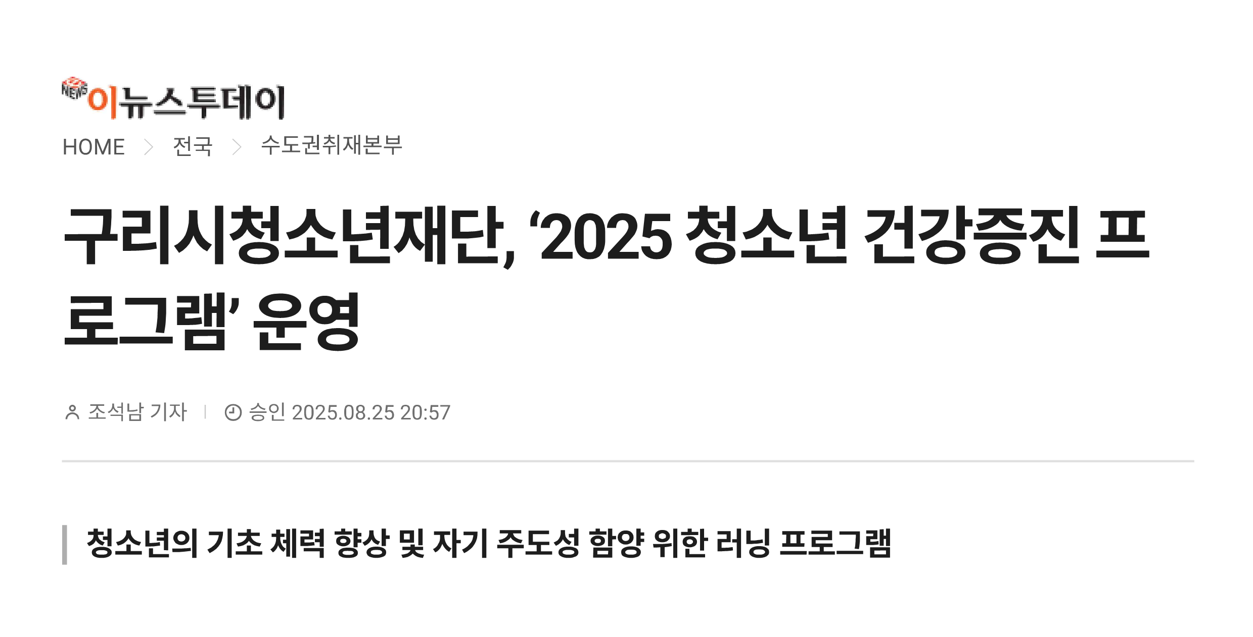 구리시청소년재단 청소년수련관, '2025 청소년 건강증진 프로그램' 운영 작성자 이경주 등록일자 2025년 8월 26일 10시 46분 17초 조회 168 1.png [ Size : 130.41KB , Down : 57 ] 미리보기 다운로드 2.png [ Size : 4.28MB , Down : 57 ] 미리보기 다운로드 3.png [ Size : 453.74KB , Down : 64 ] 미리보기 다운로드 목록보기