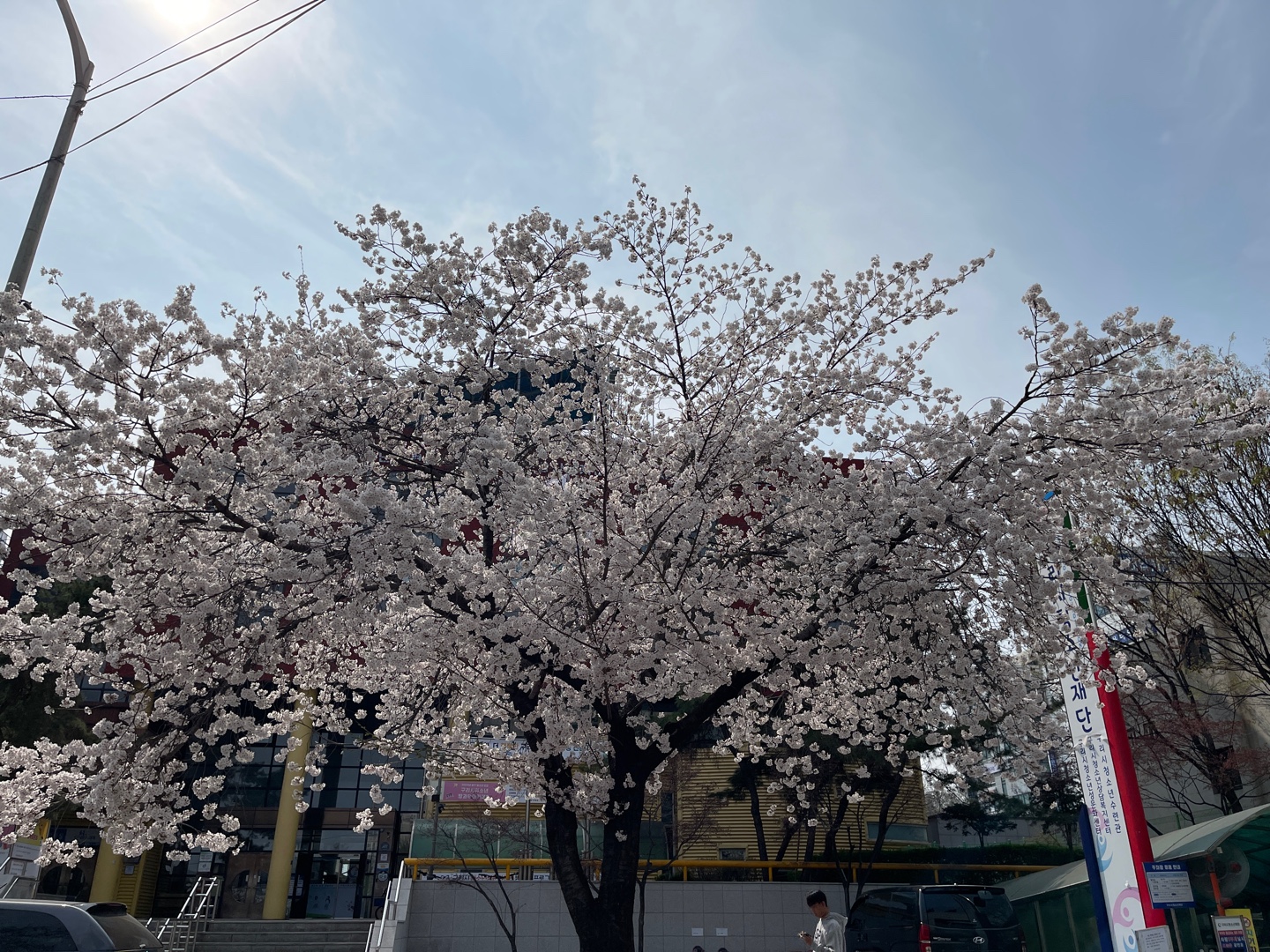 안녕하세요!~ 늘푸름방과후아카데미 입니다!~ 오늘은 저희 방과후아카데미 벚꽃 나무를 자랑하고 싶은데요!~^^ 구리시청소년재단에 큰 벚꽃나무가 만개해서 사진을 이쁘게 남겨보았습니다!~^^ 사진으로 다 담기진 않았지만 사진으로 감상하시고 즐거운 하루를 보내시기를 바랍니다!~^^