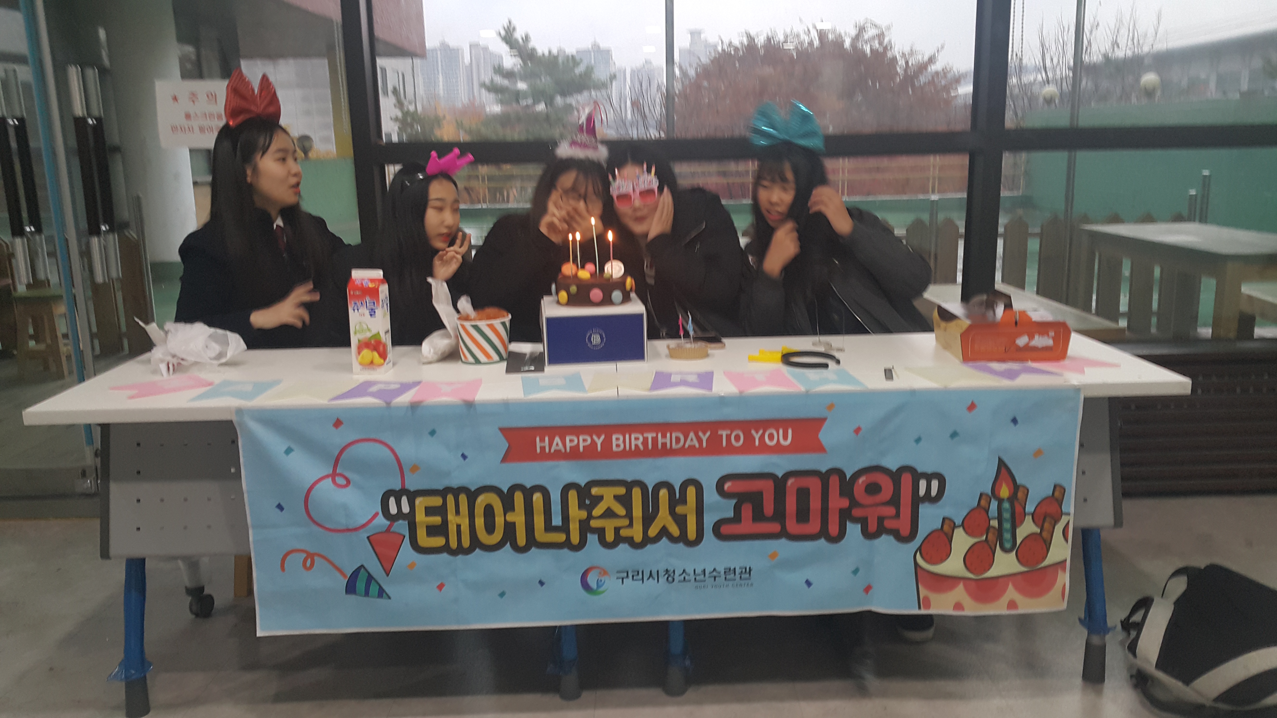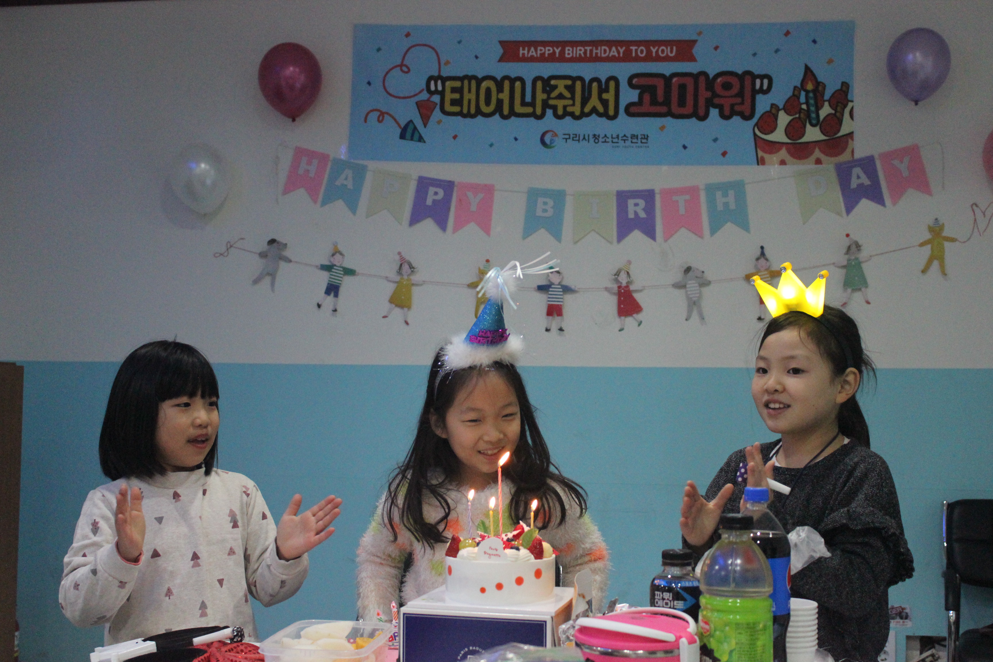 [11월 태어나줘서 고마워] 작성자 관리자 등록일자 2017년 12월 1일 11시 44분 30초 조회 734 친구의 생일을 축하하기 위한 즐거운 생일 파티를 진행 했습니다. 모두 얼굴에 웃음꽃이 피었습니다~^^'태어나줘서 고마워'는 매월 진행됩니다.유선 혹은 방문하여 접수해주세요.문의: 청소년활동팀 담당자 031)553-7101(내선122) 20171110_170055.jpg [ Size : 3.47MB , Down : 151 ] 미리보기 다운로드 IMG_4374.JPG [ Size : 1.69MB , Down : 155 ] 미리보기 다운로드 IMG_4402.JPG [ Size : 1.16MB , Down : 166 ] 미리보기 다운로드 IMG_4436.JPG [ Size : 1.43MB , Down : 161 ] 미리보기 다운로드 목록보기