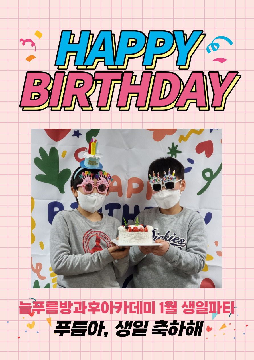 늘푸름방과후아카데미 1월 생일파티 작성자 관리자 등록일자 2022년 1월 21일 14시 12분 35초 조회 609 🎂 늘푸름방과후아카데미 1월 생일파티 🎂오늘! 늘푸름방카에서 1월 생일인 친구들을 함께 축하하는 시간을 가졌습니다🎉얘들아, 태어나줘서 고마워😍💖 늘푸름에서 행복한 추억 많이 만들자~ 생일.jpg [ Size : 352.1KB , Down : 182 ] 미리보기 다운로드 목록보기