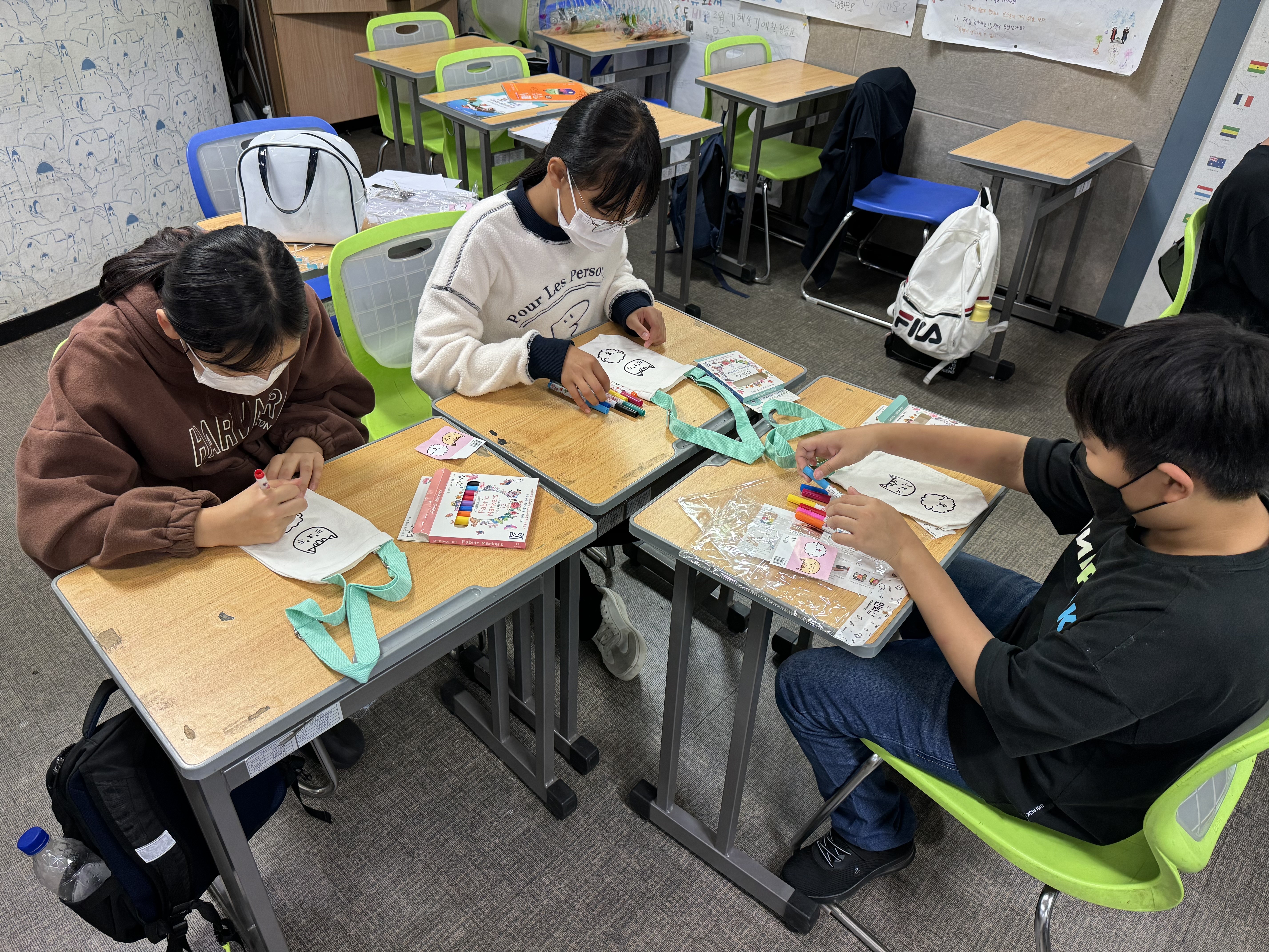 환경의 의미를 다시한번 알아보고 물병을 생활화할 수 있도록 물병파우치 꾸미기를 하였어요. 환경을 사랑하는 의미로 실용적인 물병파우치를 꾸미며 서로서로 꾸민 파우치를 자랑하며 재미있는 시간이었어요 환경을 사랑하는 우리 늘푸름방과후아카데미 친구들 영원하기를~~