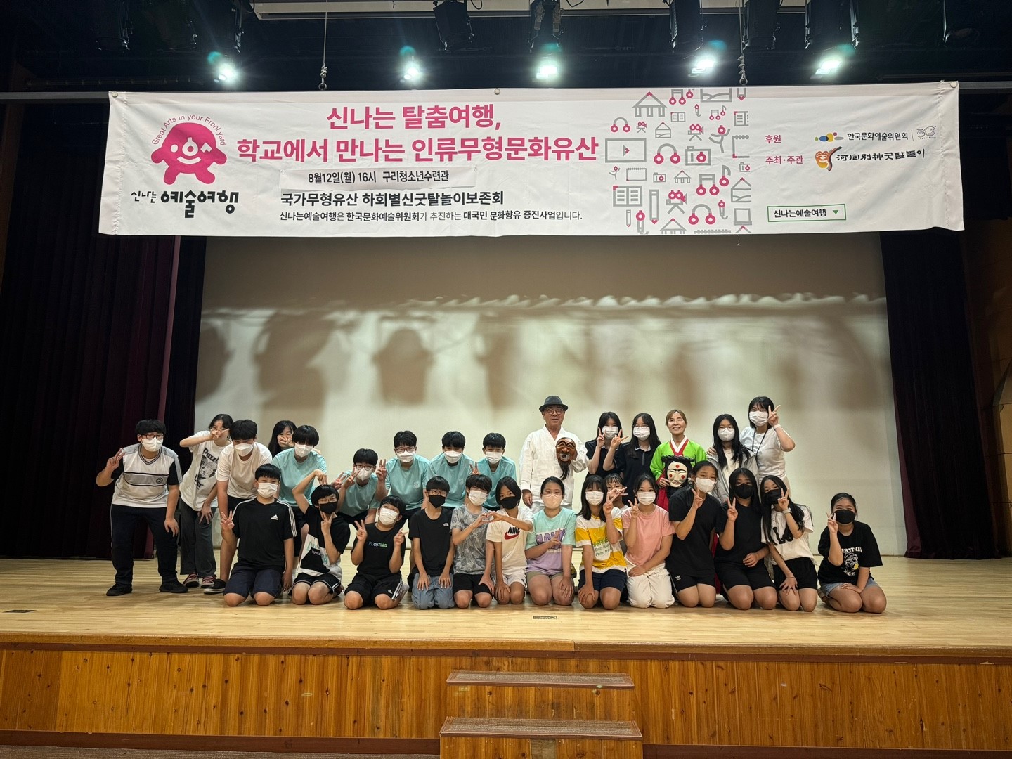 오늘은 신나는 예술여행에서 신나는 탈춤여행, 학교에서 만나는 인류무형유산 양반선비마당 탈춤을 보여주었습니다.!~^^ 우리 청소년들이 직접체험해보는 시간도 가지며 즐거운 시간을 보냈습니다.