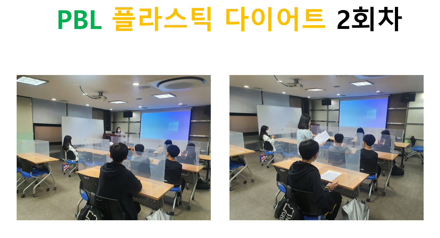 2주간 가정에서 사용하는 플라스틱 배출일지를 작성하는 과제를 수행해와서 1회차에 예측했던 양과 비교해보며 우리 집에서 플라스틱을 얼마나 사용하는지 알아보고, 구리시민들에게 어떤 메시지를 전달하는 캠페인을 할 것인지 주제를 정하였습니다.