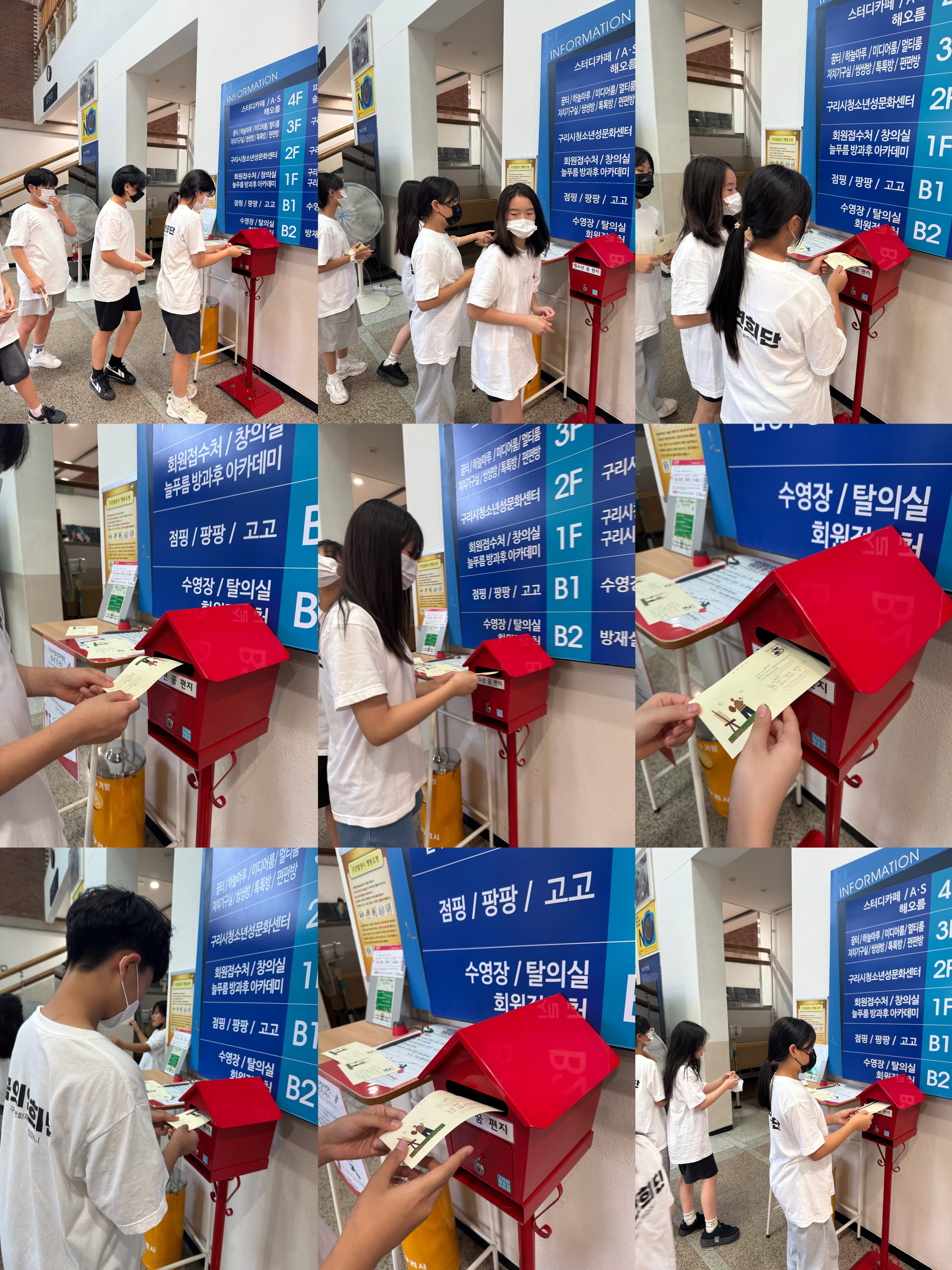 안녕하세요 늘푸름방과후아카데미 입니다. 구리시청소년수련관과 함께하는 청소년 꿈 편지 1년뒤 챌린지를 참여해보았습니다!~^^ 우리 방카 청소년들이 1년 후 나의 모습에 대해 적고 목표를 적어보며 꿈을 편지에 작성해보는 시간을 가졌습니다. 내년 이맘때 편지를 받아보며 청소년들의 성장을 보고 싶네요!~^^ 나의 미래 꿈 편지를 쓰고 싶으시다면 구리시청소년수련관으로 놀러 오세요~^^