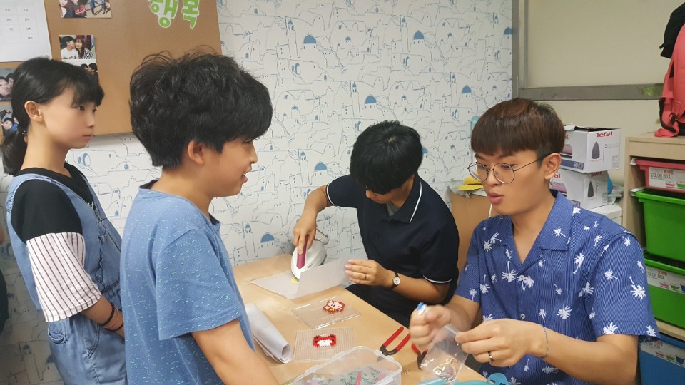 방과후아카데미 5학년, 6학년 청소년들과 함께 '픽셀브로치' 만들기 활동을 했습니다.^^