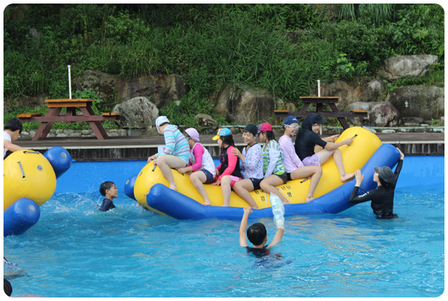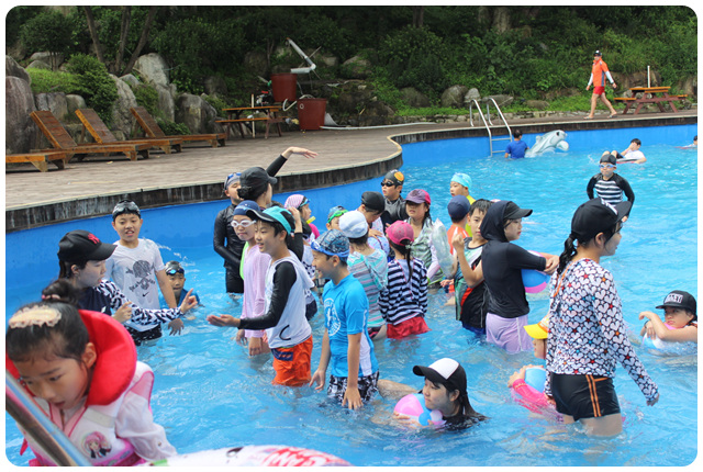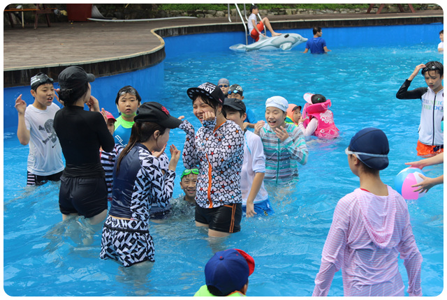 오전에 비가 내렸으나 오후에 날싸기 좋아 수영장에서 물놀이도 했습니다.