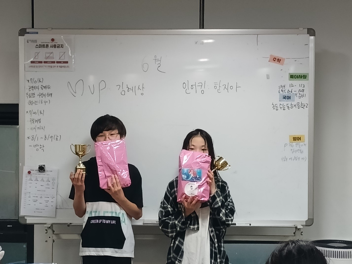 늘푸름방과후아카데미 6월 우수청소년 작성자 권도연 등록일자 2024년 7월 11일 20시 32분 32초 조회 271 늘푸름방과후아카데미에서 모범적이고 성실한 참가 청소년을 선정하여 우수청소년 시상식을 하였습니다.많은 축하와 격려 응원 부탁드립니다. ^^ 1.jpg [ Size : 269.33KB , Down : 122 ] 미리보기 다운로드 2.jpg [ Size : 194.81KB , Down : 112 ] 미리보기 다운로드 3.jpg [ Size : 221.67KB , Down : 119 ] 미리보기 다운로드 목록보기