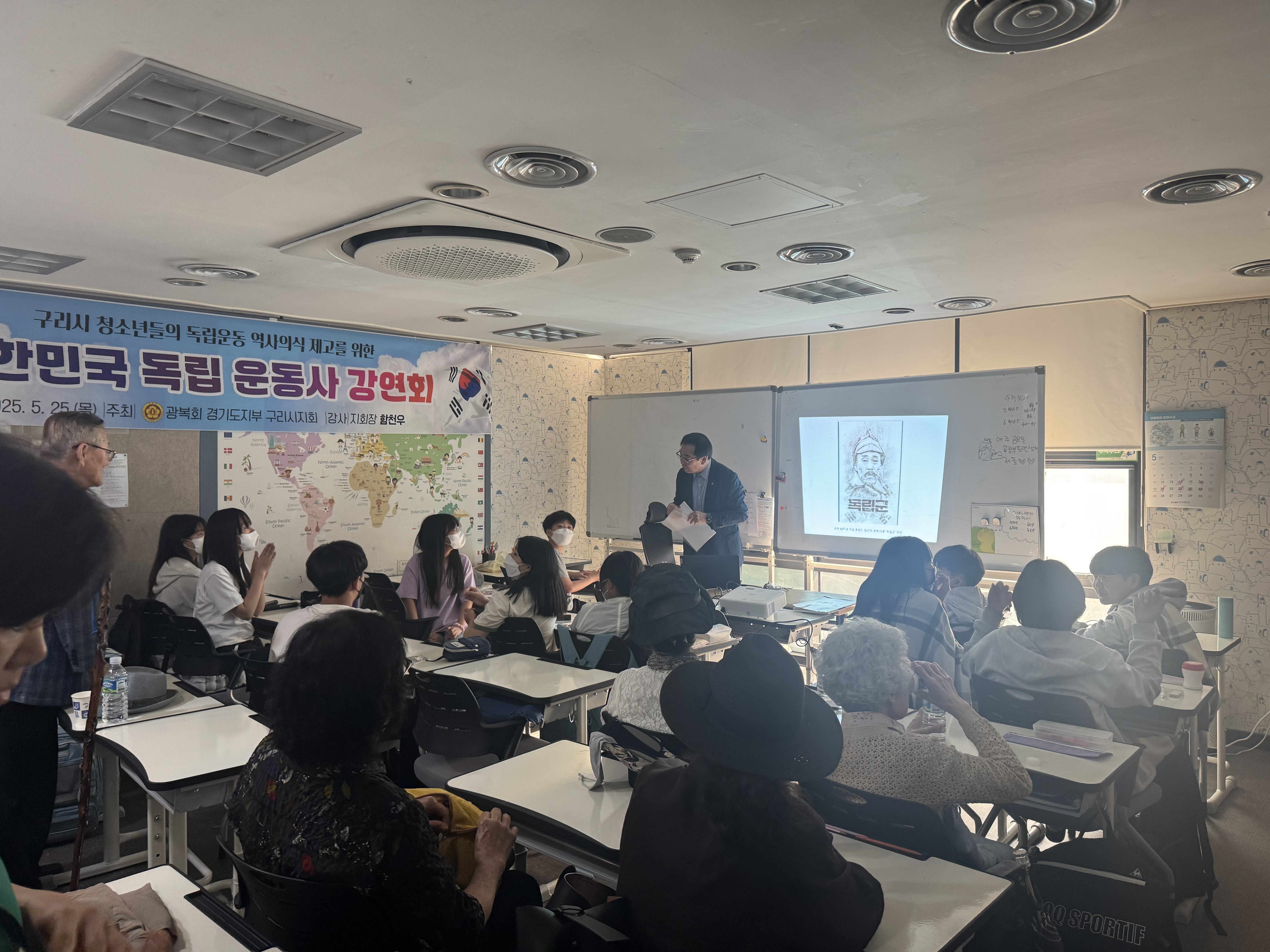 안녕하세요 늘푸름청소년방과후아카데미입니다.올해로 광복 80주년을 맞아 5월22일(목) 광복회구리지부와 연계한 독립운동사 교육을 하였습니다.